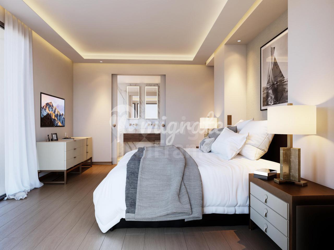 Апартаменты включают 3 спальни с ванными комнатами, просторную гостиную, кухню. В частном саду площадью 1000 кв. м расположен инфинити-бассейн. Техническое оснащение включает систему кондиционирования, систему умный дом, лифт, видеонаблюдение.