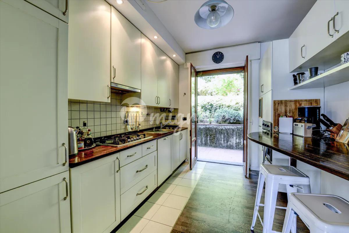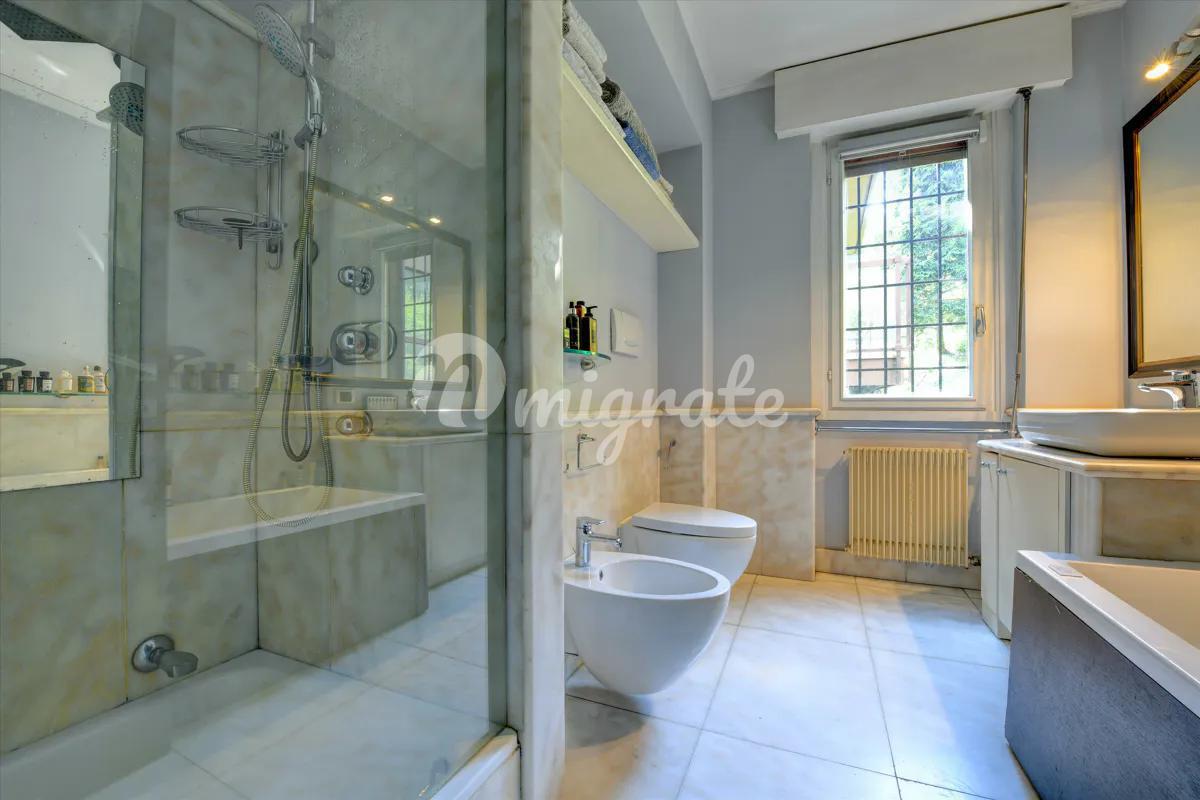 Апартаменты расположены в престижном жилом районе с панорамными видами на горы и озеро Комо. Апартаменты жилой площадью 140 кв. м включают частый сад площадью 100 кв. м и большие террасы с видом на озеро и город.