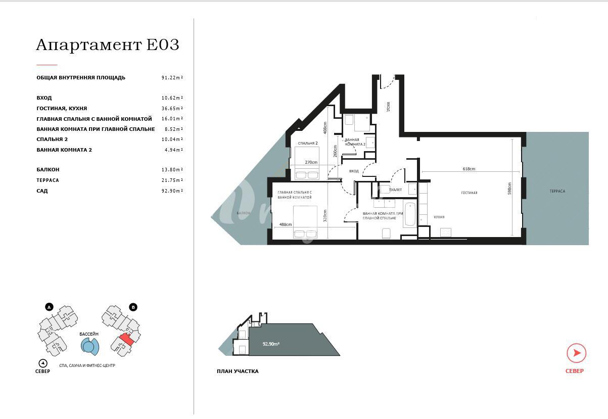 Элегантные апартаменты, расположенные в роскошной закрытой и охраняемой резиденции, включают в себя просторную гостиную зону, кухню, совмещенную со столовой, 2 спальни, 2 ванные комнаты, террасу. Встроенная кухня итальянского дизайна оснащена столешницей из кварца и техникой Siemens. В ванных комнатах установлены санитарная техника от Laufen, ванное оборудование от Hansgrohe. Апартаменты имеют систему комфортного охлаждения и обогрева, управление освещением Lutron, встроенную акустическую систему Bower and Wilkins. В апартаментах также есть прекрасная видовая терраса с деревянным настилом из бамбука с собственным садом и джакузи/бассейном. Доступен виртуальный 3D-тур.