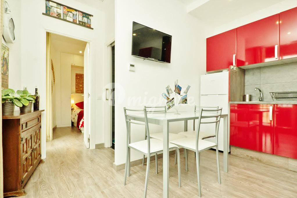 Апартаменты с туристической лицензией расположены в прибрежном районе Барселоны Побленоу, в 5 минутах ходьбы до пляжа. Апартаменты включают салон-столовую с выходом на балкон, оборудованную кухню, две спальни и ванную комнату. Апартаменты полностью меблированы и оснащены отоплением и кондиционированием.