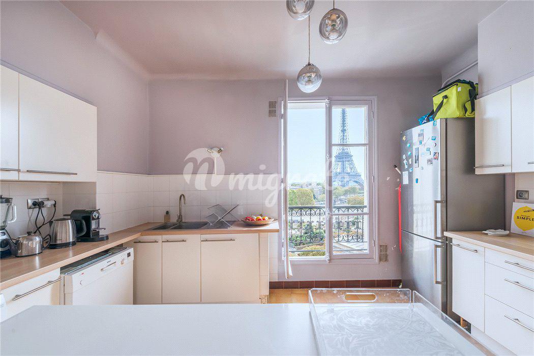 Превосходные апартаменты расположены в престижном районе в 16-ом округе в Париже. Из апартаментов открываются виды на Эйфелеву башню. Апартаменты находятся на 5-ом этаже отреставрированного здания, оснащенного лифтом. Апартаменты площадью 140 кв. м состоят из гостиной, библиотеки, столовой, полностью оснащенной кухни, 2 спален, 2 ванных комнат, прачечной, гардеробной и кладовой.