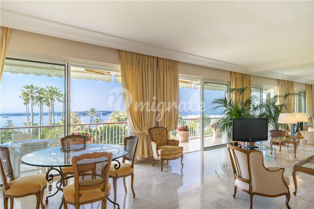 Апартаменты расположены в Каннах в районе Калифорни, в престижной резиденции с садами, бассейном, тремя теннисными кортами и захватывающими видами на море.