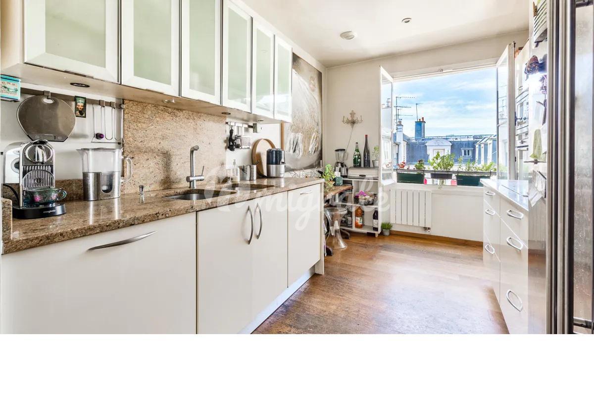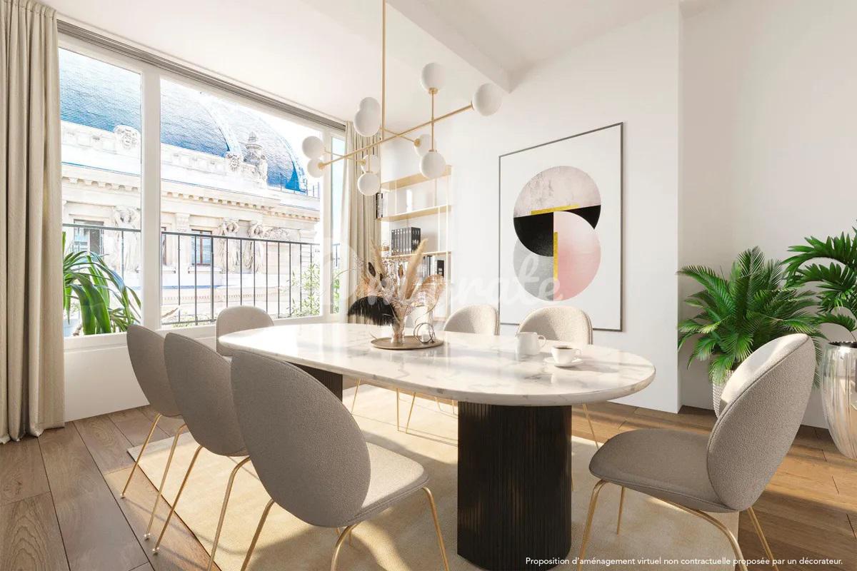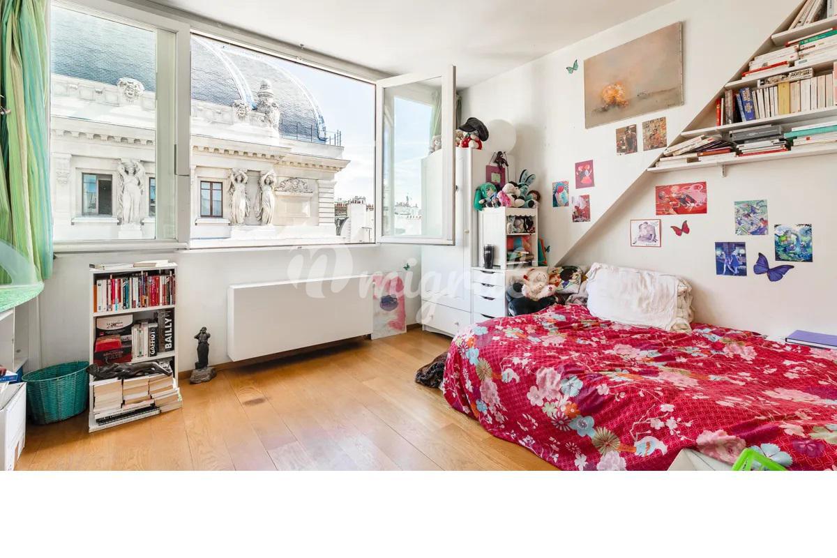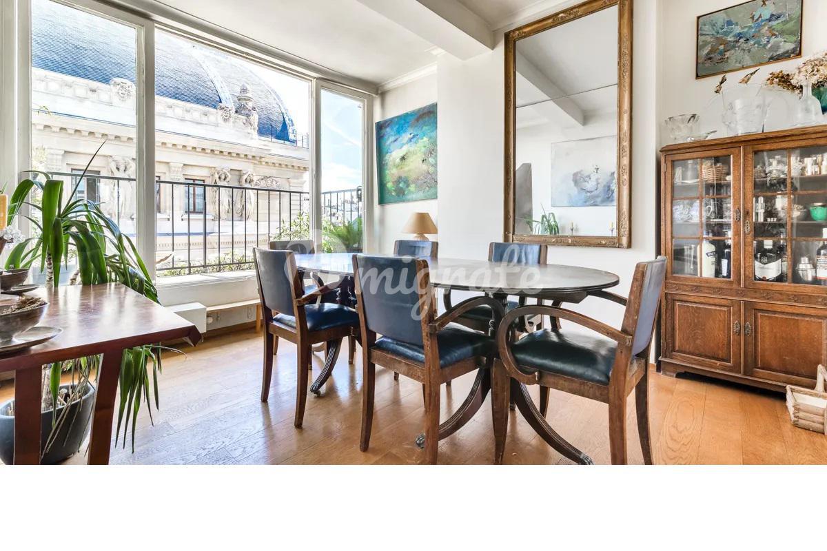 Четырехкомнатная квартира на площади Буальдье расположена в великолепном недавно отремонтированном здании 18 века. Квартира площадью 143 м² находится на пятом (последнем) этаже здания. Из окон квартиры открывается захватывающий вид на здание Национального театра комической оперы. Квартира включает в себя прихожую, светлую гостиную площадью 40 м², просторную столовую, полностью оборудованную кухню с выходом во внутренний двор, четыре спальни, три ванные комнаты, прачечную.