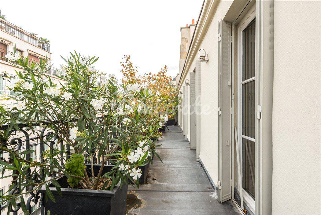 Апартаменты расположены на двух верхних этажах (5-ом и 6-ом) престижной резиденции на Сен-Филипп-дю-Руль в центре Парижа. Из окон и с террасы апартаментов открываются захватывающие виды. Первый этаж включает прихожую, две гостиные, кабинет, полностью оснащенную кухню, столовую, основную спальную.