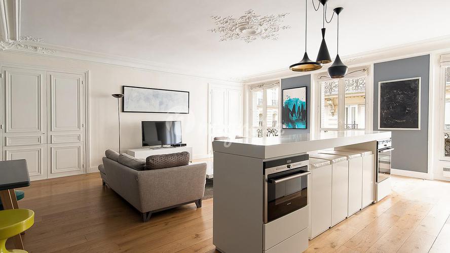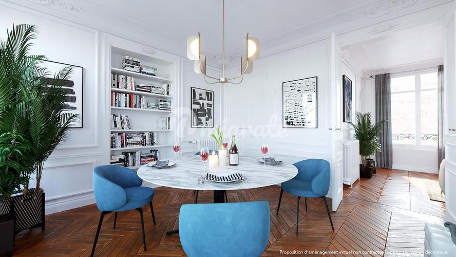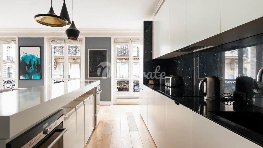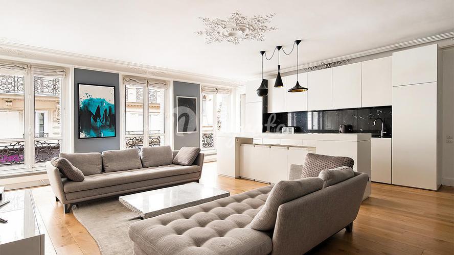 Апартаменты расположены в 8ом округе в Париже. Апартаменты находятся на 3м этаже в новом здании, оснащенном лифтом. Апартаменты включают гостиную открытого плана, полностью оснащенную кухню, 4 спальни, прачечную, 2 ванные комнаты и 2 отдельных санузла. Есть возможность приобрести места в подземном паркинге за дополнительную цену.