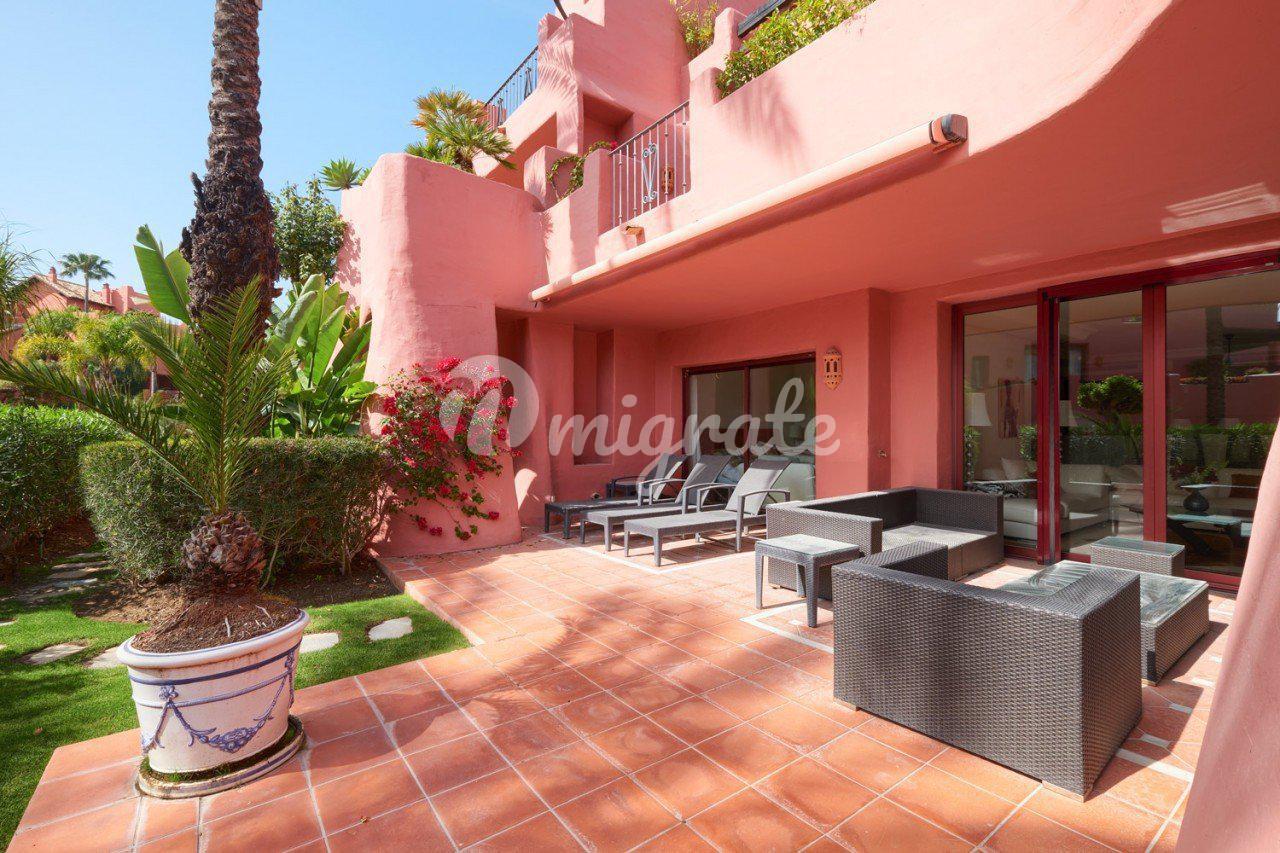 Просторные апартаменты на первом этаже, расположенные на береговой линии, на Новой Золотой Миле. Апартаменты с южной ориентацией, в шаговой доступности от пляжа. В квартире большая гостиная и столовая, полностью оборудованная кухня, прачечная. Главная спальня с ванной комнатой, две гостевые спальни с ванными комнатами. Из гостиной и спален прямой доступ к крытым и открытым террасам. В стоимость входит место в подземной парковке и кладовка.