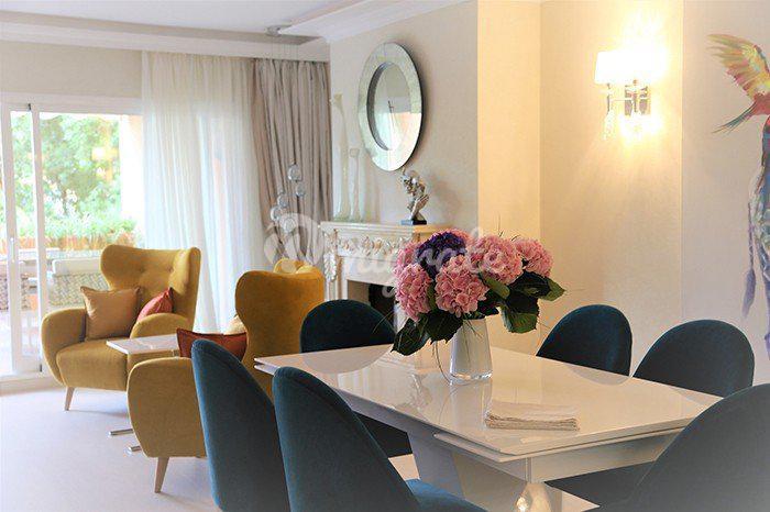 Роскошные апартаменты расположились в районе Guadalmina Baja. Полностью обновленные ультрасовременные апартаменты располагают тремя спальнями и тремя ванными комнатами, просторной гостиной с камином, полностью оборудованной кухней. Апартаменты находятся в закрытой охраняемой урбанизации Alhambra del Golf. На территории большой красивый бассейн и тропический сад, круглосуточная охрана.