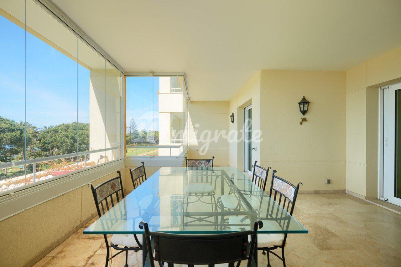 Апартаменты на первой линии пляжа, расположенные в районе Кабопино, Марбелья. С терасы открывается потрясающий вид на море и береговую линию. В пешей доступности порт Кабопино, рядом со всей инфраструктурой. Апартаменты располагают уютной гостиной и столовой, полностью оборудованной кухней (техника Bosch), главной спальней с ванной комнатой, гостевой спальней и отдельной ванной комнатой. Из гостиной доступ на застекленнную террасу. Гараж и кладовка включены в стоимость.