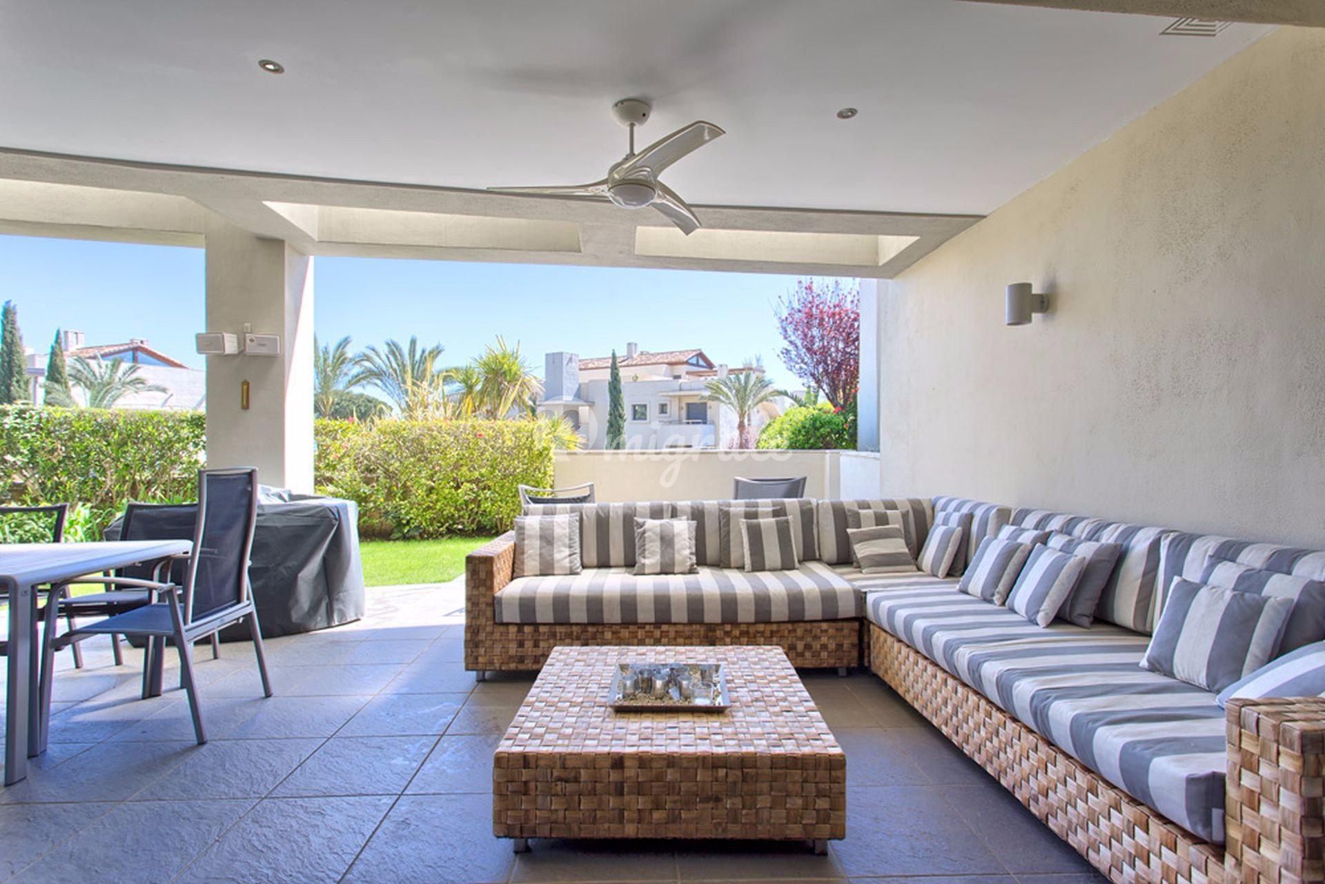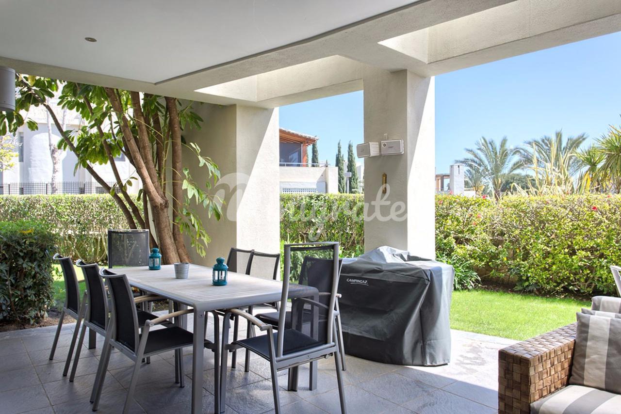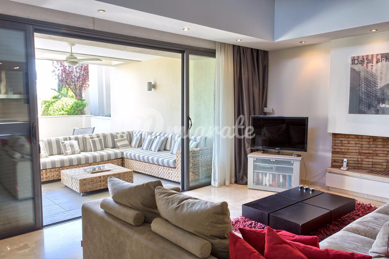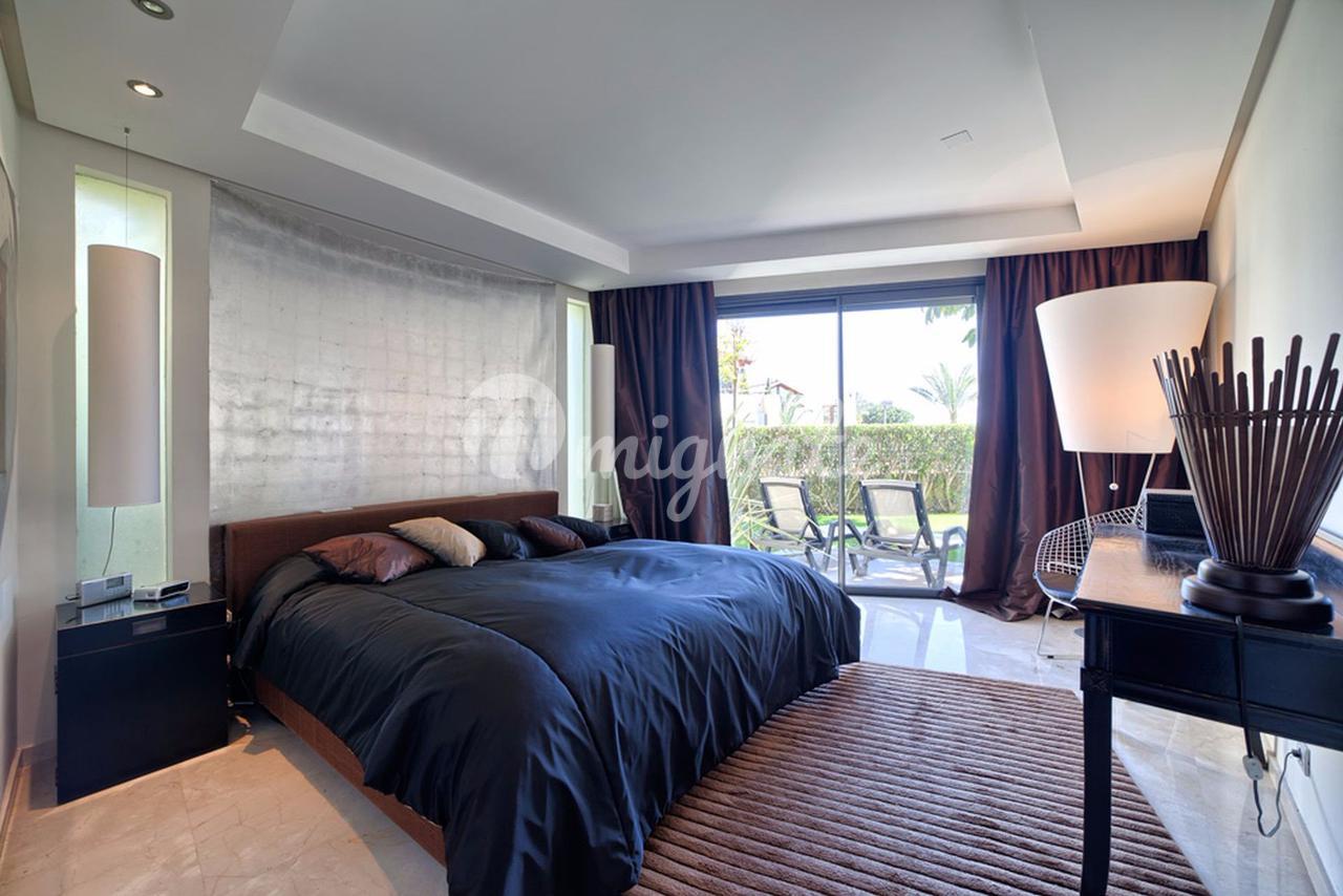 Просторные роскошные апартаменты, расположенные на Золотой Миле, Марбелья. Апартаменты находятся на первом этаже закрытого охраняемого комплекса. Апартаменты располагают: столовой, гостиной с камином и высокими потолками, полностью оборудованной современной кухней открытого плана, главной спальней с ванной комнатой и гардеробной, 2 гостевыми спальнями с ванными комнатами. Из всех спален есть выход на террасу и небольшой частный сад.