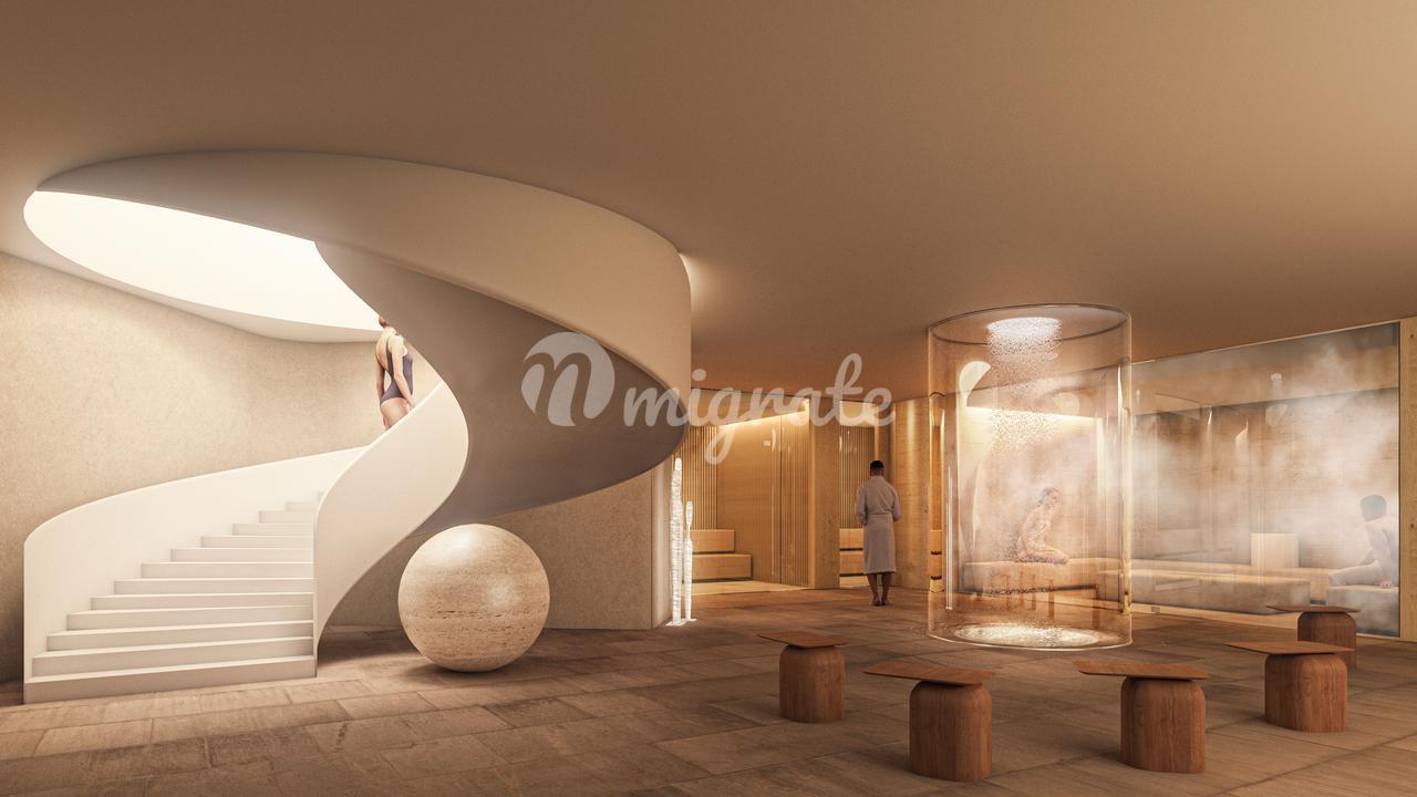 Всего в отеле будет 238 номеров различных категорий. На территории планируется: три бассейна, один из которых детский, большая зона СПА площадью более 1000 кв. м, которая включает массажные и процедурные кабинеты, русскую баню, финскую сауну, соляную пещеру, тренажерный зал; также в отеле будет лыжная комната, гараж, большой конференц-зал на 400 человек и переговорные комнаты, 3D кинотеатр, баскетбольная и волейбольная площадка, футбольное поле, теннисный корт, боулинг и т.д. Это единственный на севере проект со своими собственными спортивными активностями.
