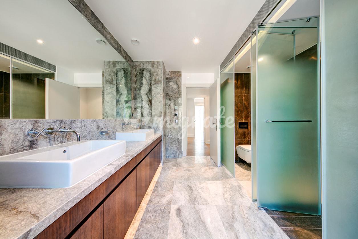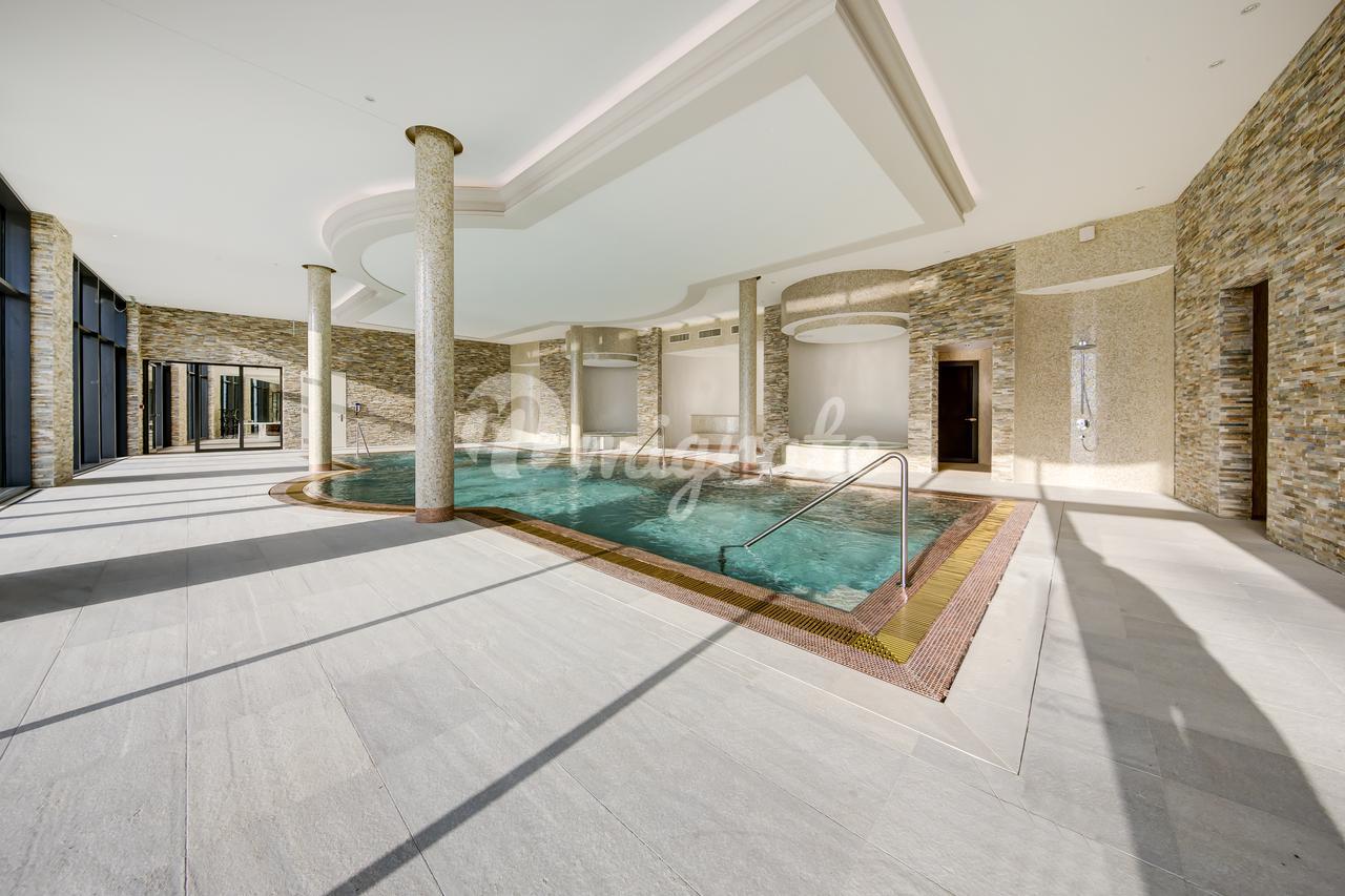 Апартаменты общей площадью 205 кв.м. расположились в новой резиденции на берегу Женевского озера. В отделке использовались натуральные материалы, такие как паркет из дерева ценных пород и мрамор. Кухонное оборудование и техника, включающая встроенную кофе-машину и винный шкаф, а также оснащение ванных и гардеробных комнат представлено ведущими брендами. Комфортное проживание обеспечат встроенные системы увлажнения и очистки воздуха. Планировка апартаментов включает в себя две спальни, две ванные комнаты, гостиную, кухню, а также четыре балкона, с которых открывается великолепный вид на озеро и горы. Также доступно два машиноместа в крытом паркинге.