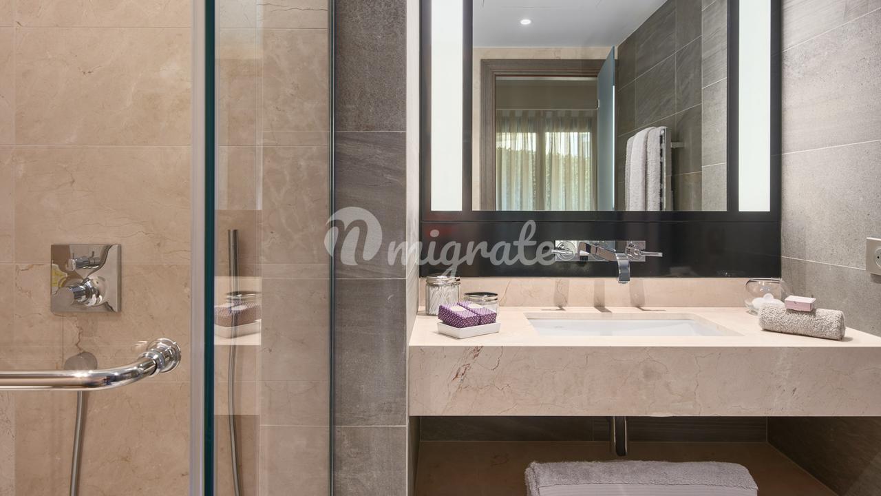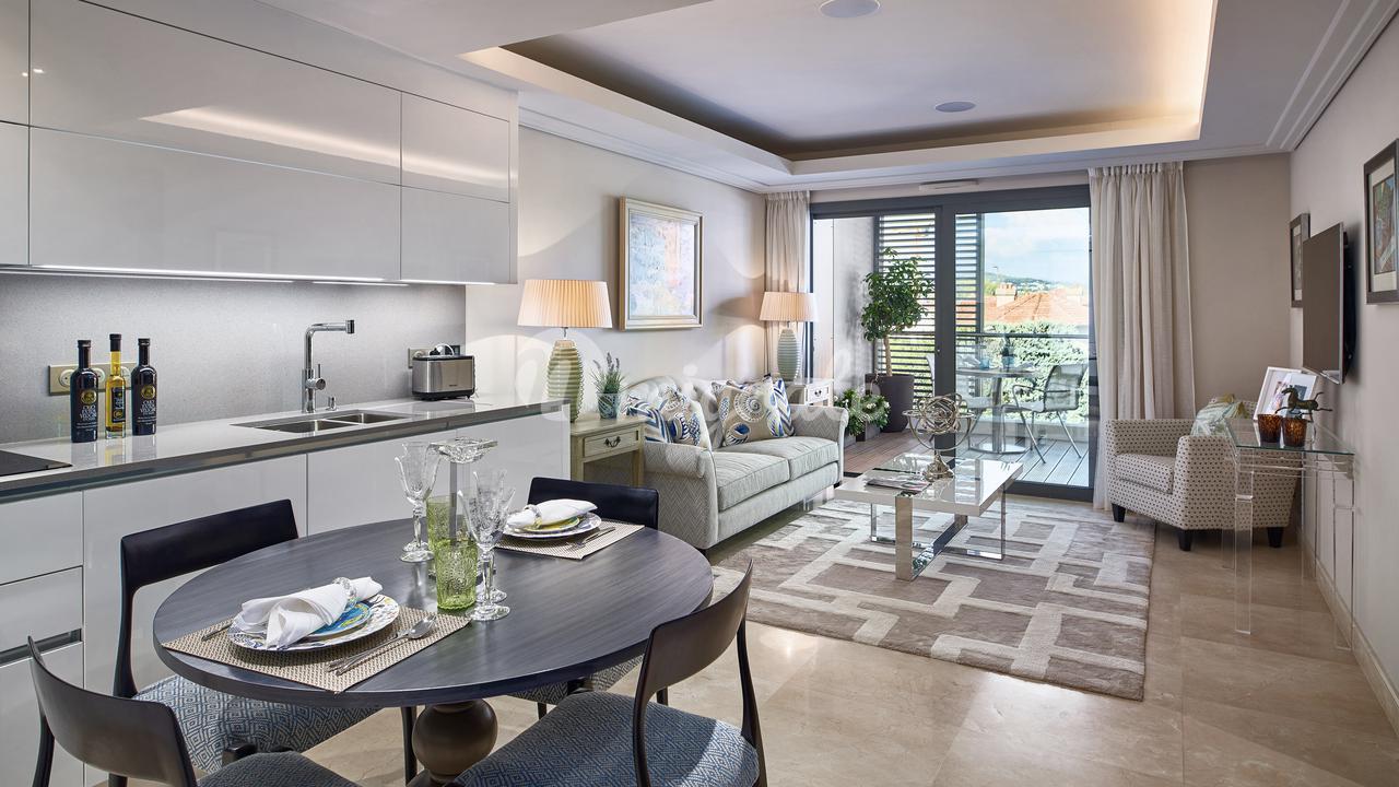 Элегантные апартаменты, расположенные в роскошной закрытой и охраняемой резиденции, включают в себя просторную гостиную зону, кухню, совмещенную со столовой, 1 спальни, 1 ванную комнату, террасу. Встроенная кухня итальянского дизайна оснащена столешницей из кварца и техникой Siemens. В ванной комнате установлены санитарная техника от Laufen, душ в дизайнерском оформлении от Hansgrohe. Апартаменты имеют систему комфортного охлаждения и обогрева, управление освещением Lutron, встроенную акустическую систему Bower and Wilkins. В апартаментах также есть прекрасная видовая терраса с деревянным настилом из бамбука. Доступен виртуальный 3D-тур.