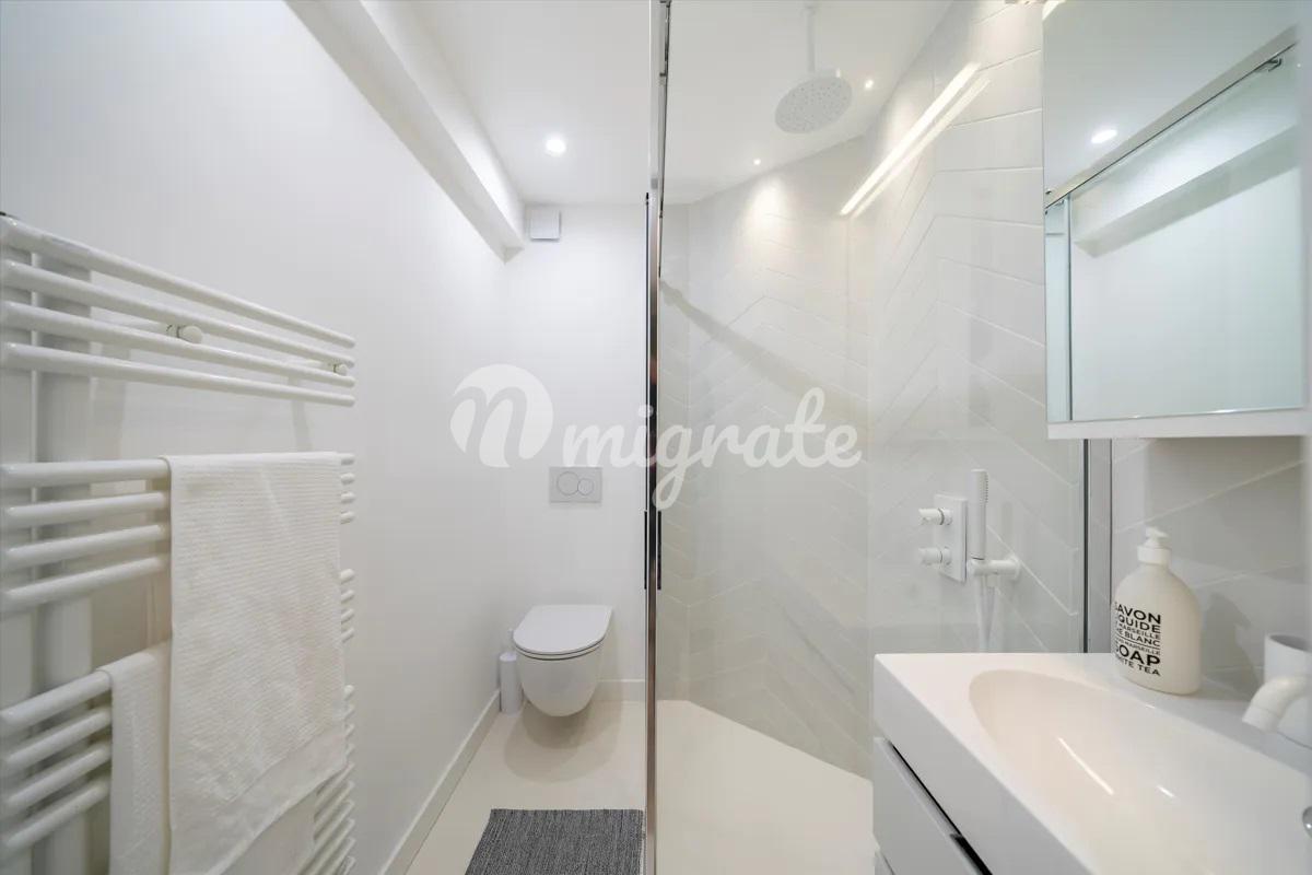 Квартира состоит из гостиной, столовой, полностью оборудованной полуавтономной кухни и спальни с душевой комнатой, которая также выходит на террасу. Во второй спальне есть душевая и гостевой туалет. В стоимость квартиры включено подвальное помещение и машино-место в подземном паркинге.