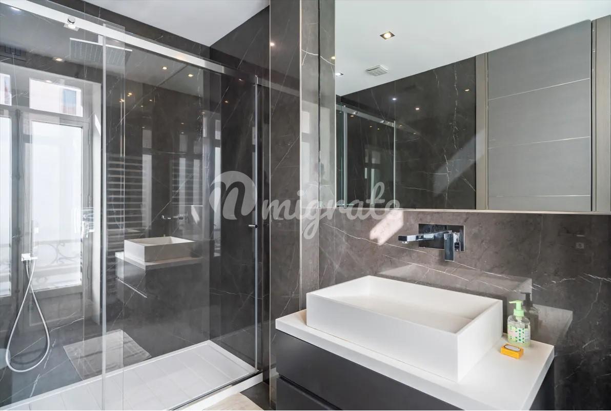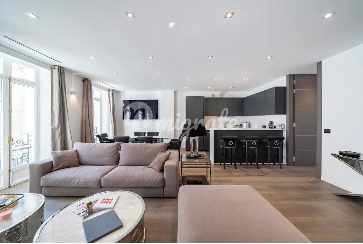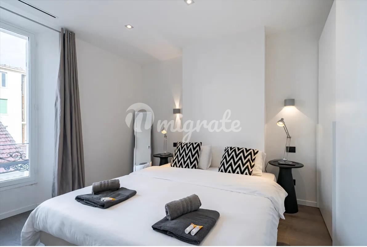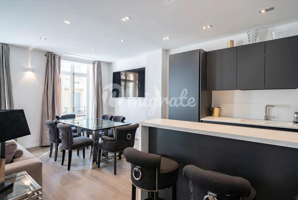 Апартаменты, расположенные в центре Канн, находятся в непосредственной близости к пляжам, магазинам, ресторанам и Дворцу фестивалей. Эти апартаменты площадью 150 квадратных метров отреставрированы и имеют высококачественные материалы в отделке. Одним из преимуществ данных апартаментов является большая терраса. Апартаменты также включают в себя просторные гостиную и обеденную зоны, полностью оборудованную кухню, 4 спальни