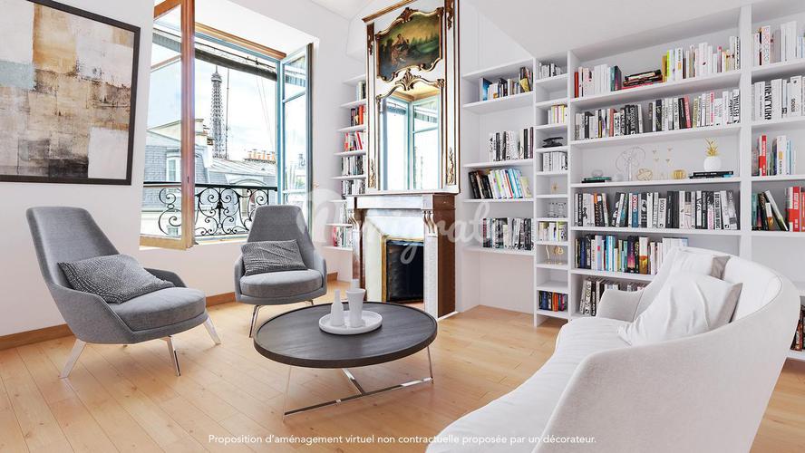 Gros Caillou / улица Клерк. На верхних этажах на лифте старого здания, недавно отремонтированного, великолепная трехуровневая квартира площадью 100,84 кв.м. (88,94 кв.м. по закону Карреза). На первом