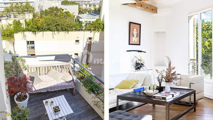 Сад растений. Этот светлый семейный дуплекс площадью 130,43 кв.м. на площади Карреза и 143 кв.м. на земле имеет беспрепятственный вид и террасу, расположенную на четвертом и последнем этажах с лифтом