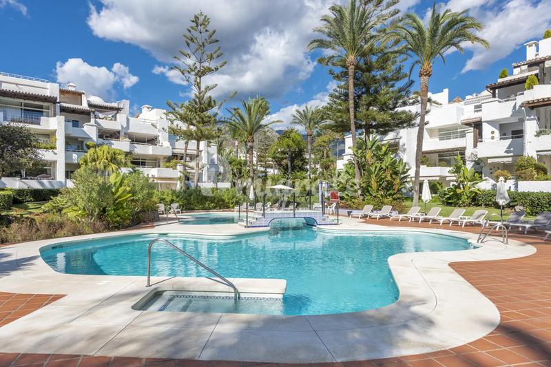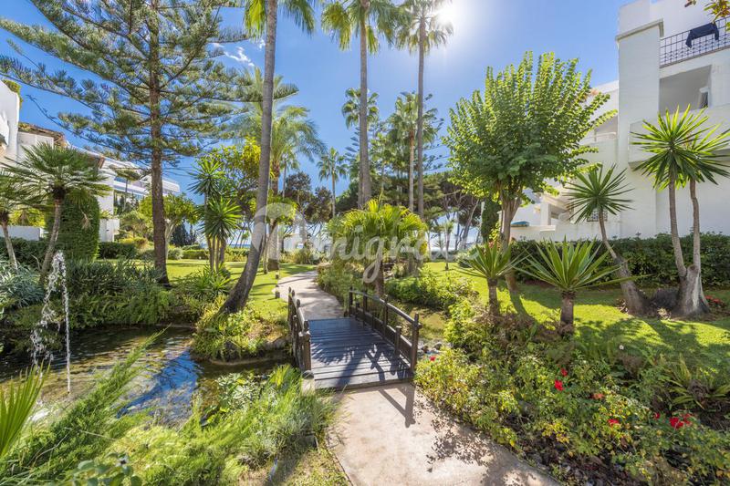 Квартира на среднем этаже в комплексе на первой линии пляжа в одном из самых востребованных и престижных жилых районов Золотой Мили Марбельи. Прекрасные сады с идиллическими каскадами, водяными лилиям