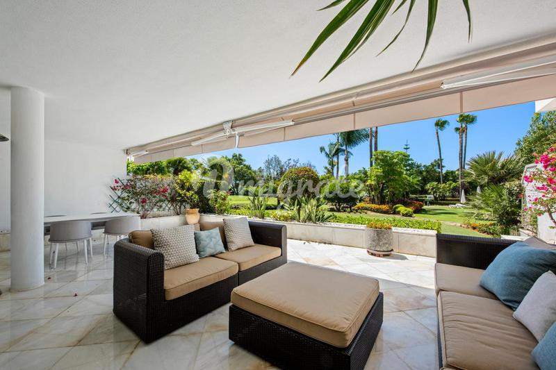 Эта квартира на первом этаже расположена в эксклюзивном комплексе Mansion Club, на Золотой Миле Марбельи. Закрытый и безопасный комплекс, построенный с использованием современных высококачественных ма