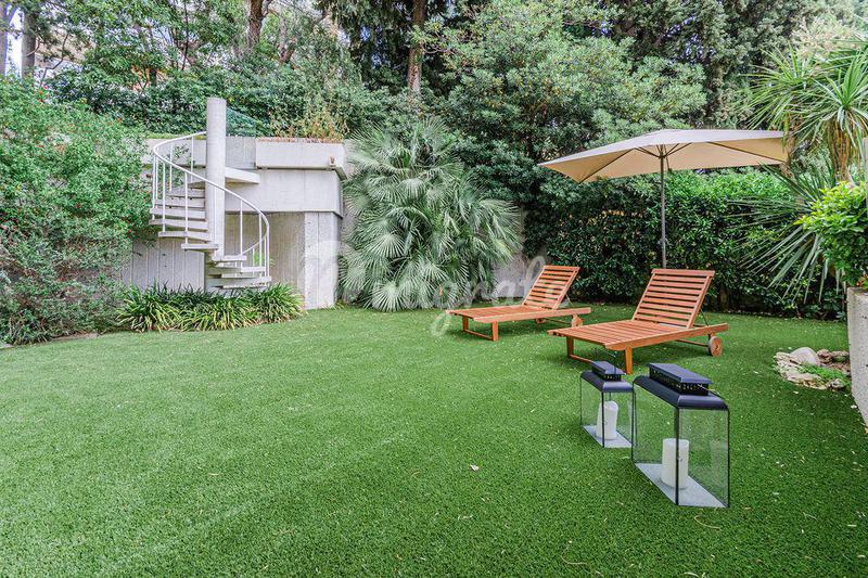Квартира на первом этаже с зеленым садом в отличном состоянии в элитном районе Педральбес города Барселона. Общая площадь 328 м.кв. Распределенная на двух этажах с двумя отдельными входами, на первом