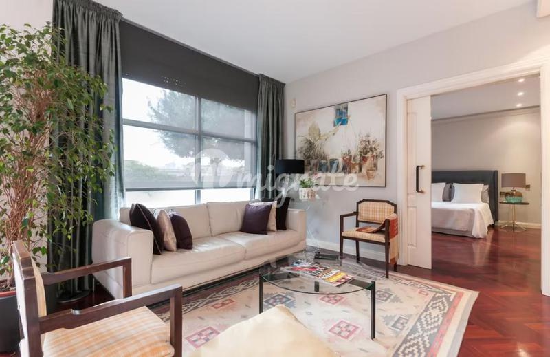 Апартаменты в отреставрированном здании 1915 год постройки расположены на одной из центральных улиц Мадрида. Апартаменты площадью 167 кв. м состоят из четырех спальных комнат, гостиной, двух ванных ко