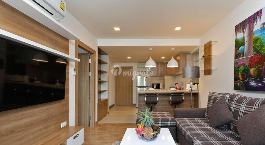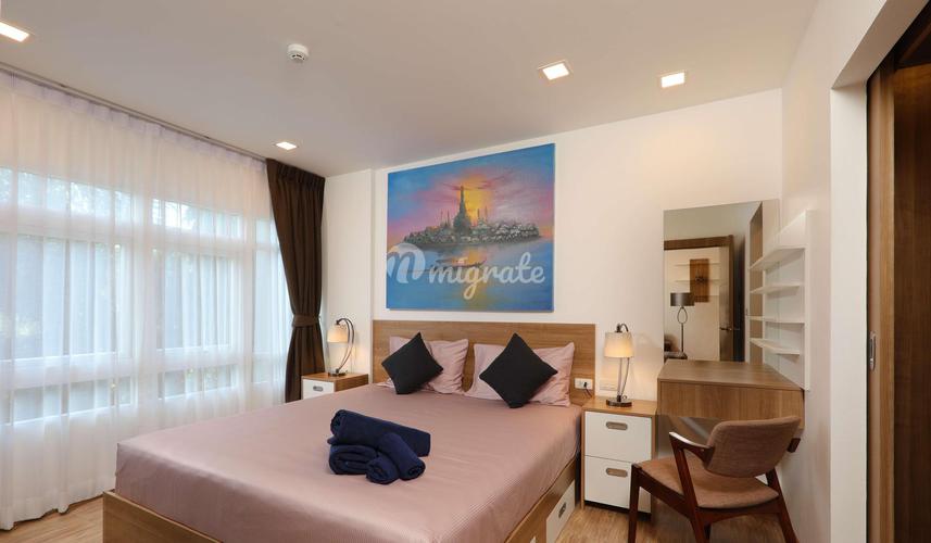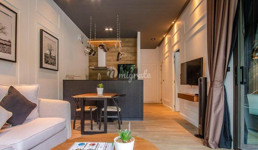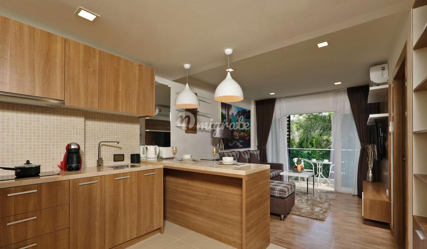 Просторная квартира с отдельной спальней в кондоминиуме, который расположен в 600 метрах от популярного пляжа Найхарн. Гостиная оформлена в современном стиле. Большие окна пропускают много естественно