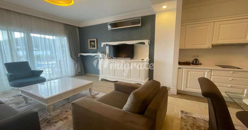 Резиденция на берегу моря на 2-м этаже находится в Бодруме. Удобства: 3 спальни, 1 гостиная, 1 отдельная кухня, 2 больших балкона, 2 ванные комнаты, услуги звездного отеля со спа-салоном, фитнесом и т