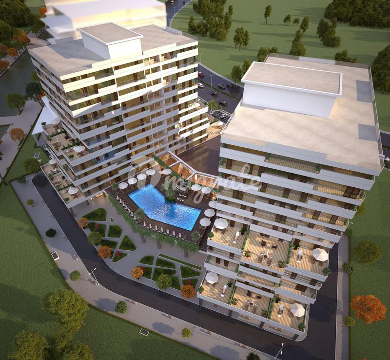 Проект состоит из: 8 блоков зданий, включающих 563 квартиры. В наличии квартиры планировками: 1+1, 2+1, 3+1. На территории: торговый центр, открытый/крытый бассейны, спортивный-комплекс 2000м2 , библи