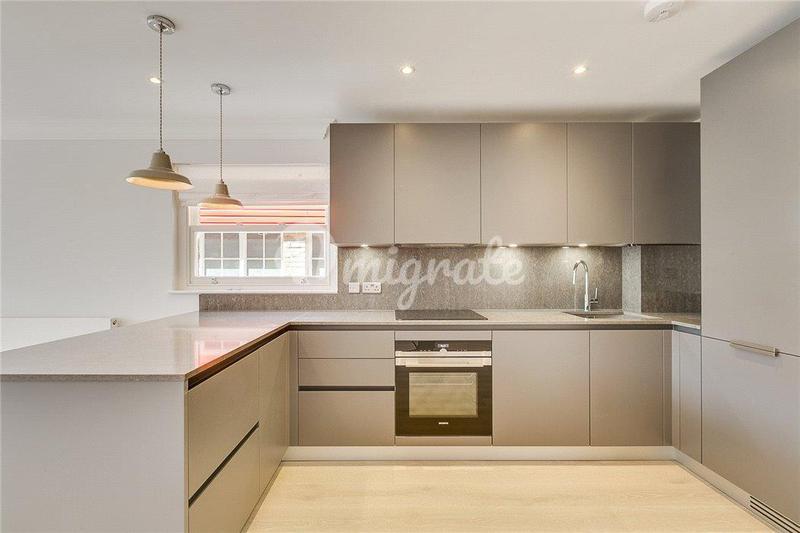 Эта квартира на втором и третьем этажах ведет через прихожую в приемную / столовую шириной 38 футов с прекрасным видом на Кенсингтон. На кухне установлена встроенная бытовая техника Siemens и кран с м