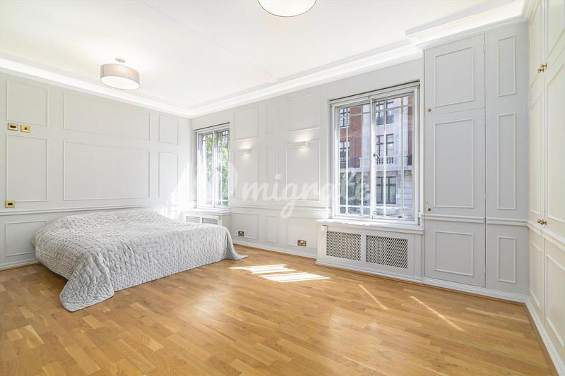 Великолепная боковая квартира с 4-5 спальнями и видом на красивые сады Портман-сквер, расположенная на шестом этаже одного из самых престижных зданий Мэрилебон. Элегантный дом выполнен в соответствии