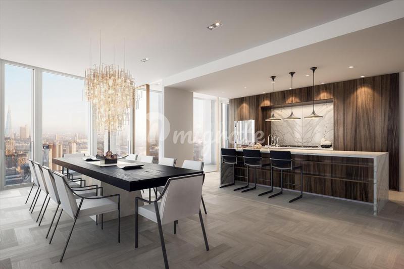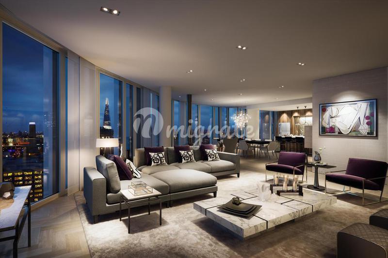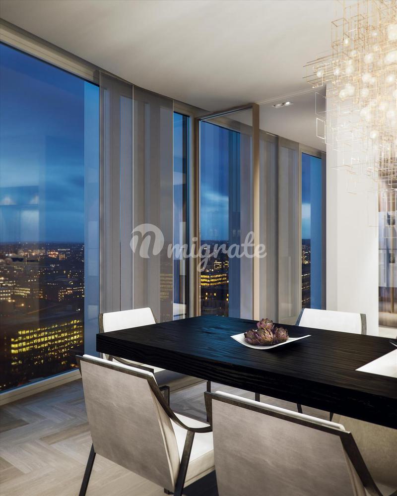 Этот боковой пентхаус на 39-м этаже доступен для покупки в том виде, в каком он виден, что дает исключительную возможность создать идеальное пространство. Панорамный вид на Темзу и город открывается п