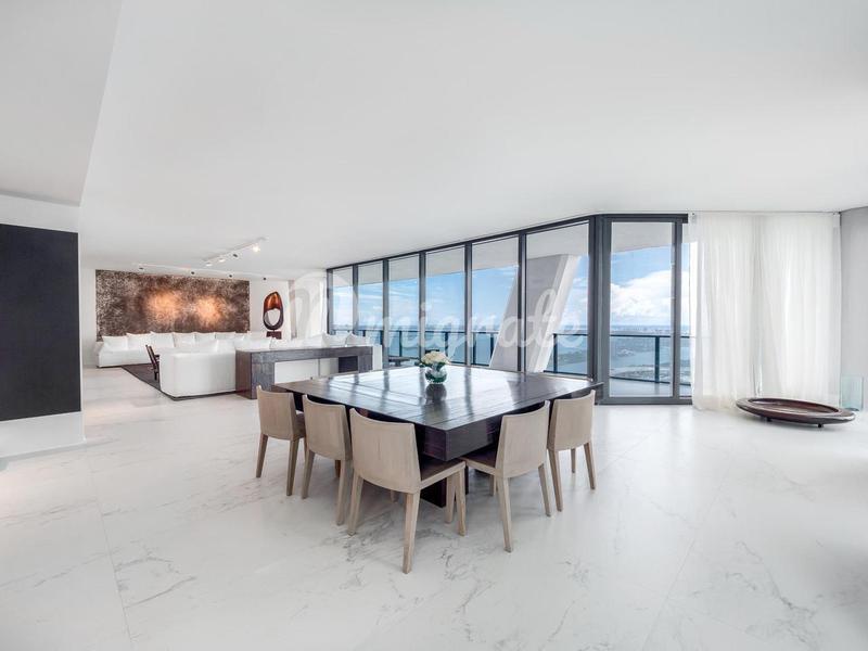 Роскошное здание One Thousand Museum легендарной архитектуры Захи Хадид, самая престижная жилая башня Майами. Эта безупречная двухэтажная резиденция включает в себя 4 спальни / 5,5 ванных комнат / сем