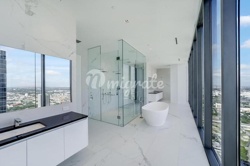Пентхаус на 51-м этаже в ONE Paraiso с захватывающим видом на Майами-Бич, Ки-Бискейн и кристально голубые воды залива Бискейн. Наполненный светом и подчеркнутый роскошной отделкой, этот план этажа с 4