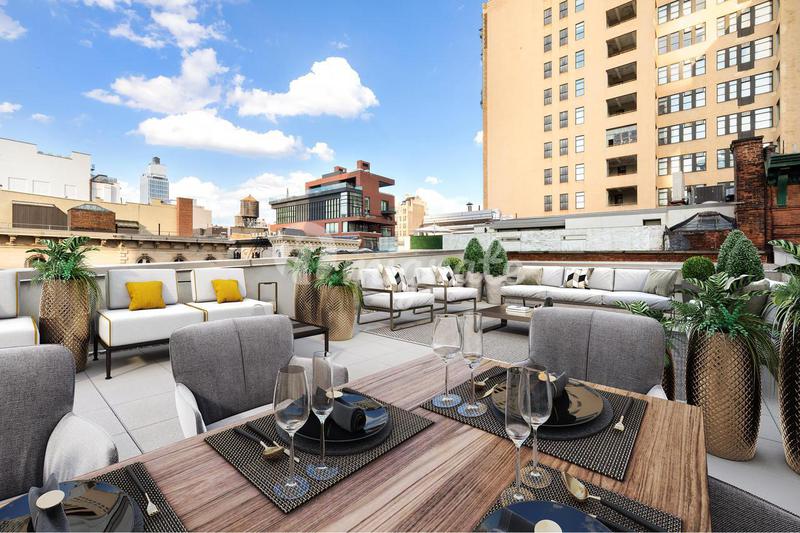 Пентхаус B занимает самый высокий уровень оригинальной постройки Six Cortlandt Alley. Этот полноэтажный лофт содержит частный оазис на крыше площадью 1139 квадратных футов — самый большой непрерывный