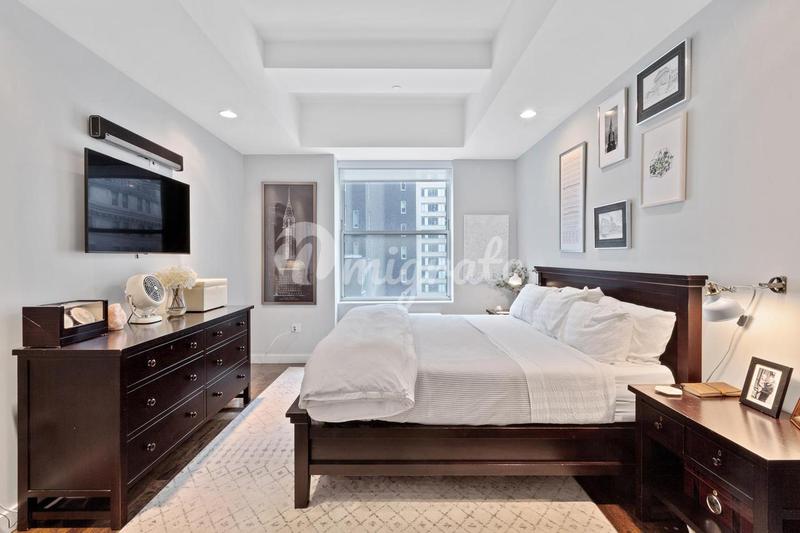 Полюбуйтесь этой красивой квартирой на высоком этаже в роскошном кондоминиуме Reade57 в престижном районе Трайбека, и вы определенно захотите сделать ее своей! Гламурная жемчужина с 3 спальнями и 2,5