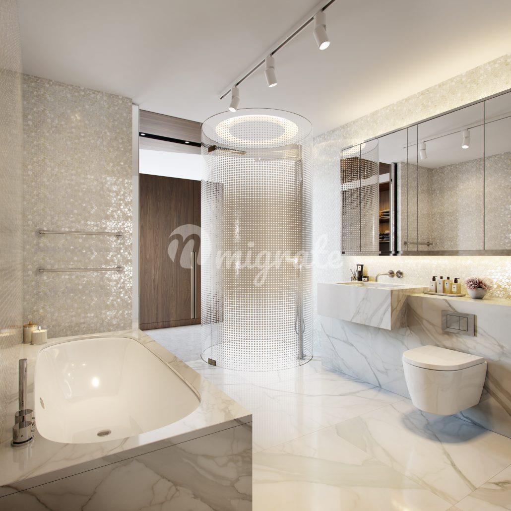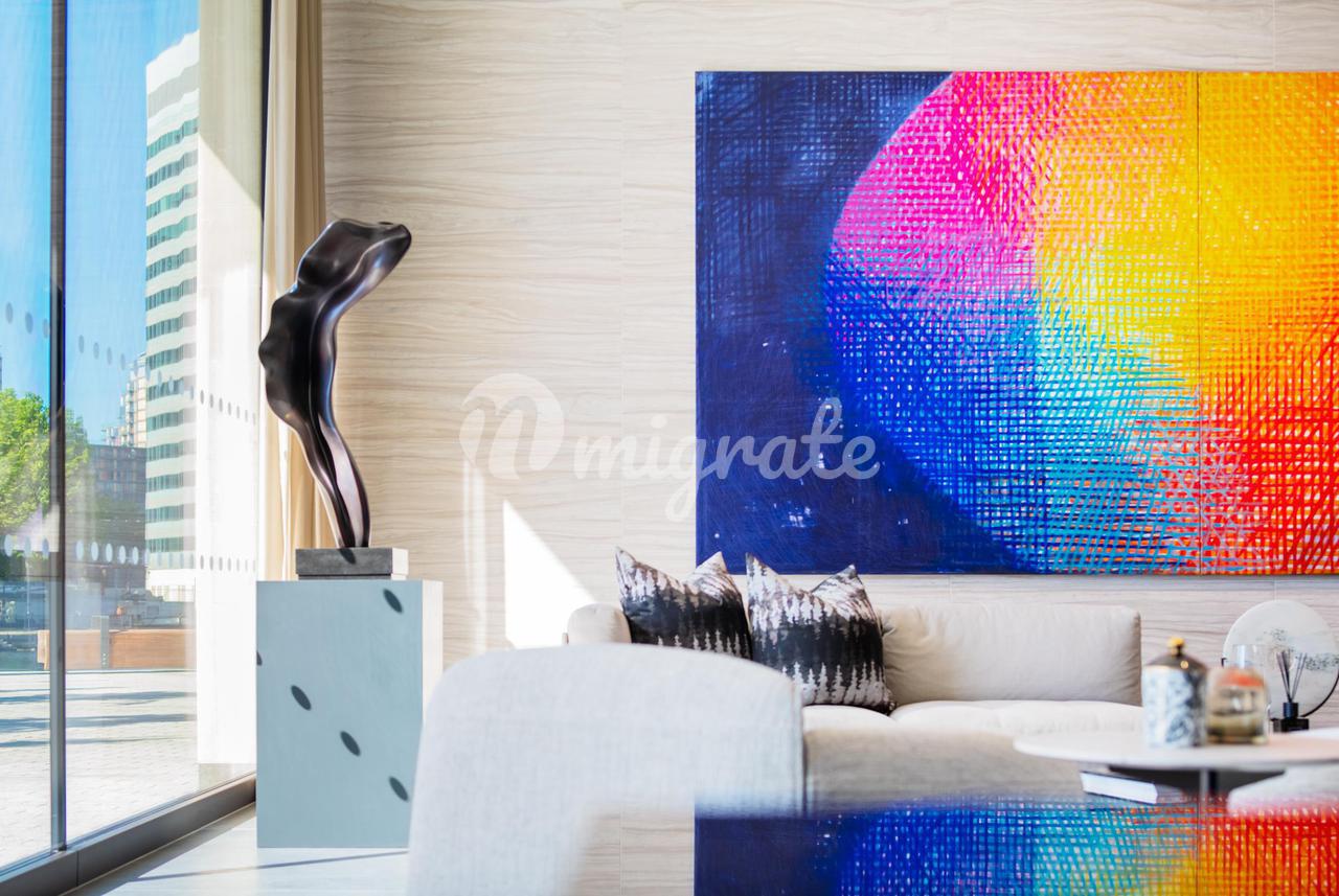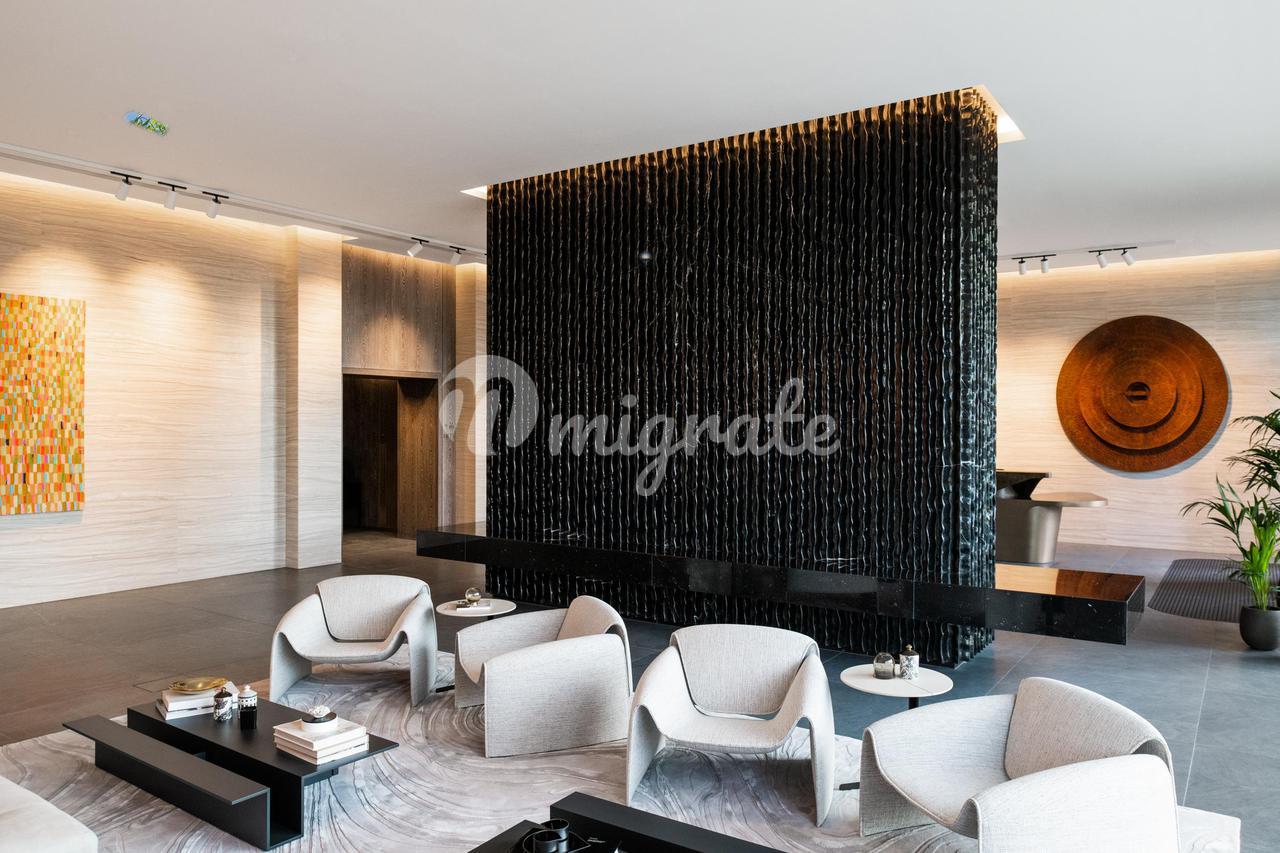 Эта квартира расположена на 3-м этаже этой 58-этажной башни и имеет внутреннюю площадь 682 кв. Фута, а также террасу площадью 116 кв. Футов.