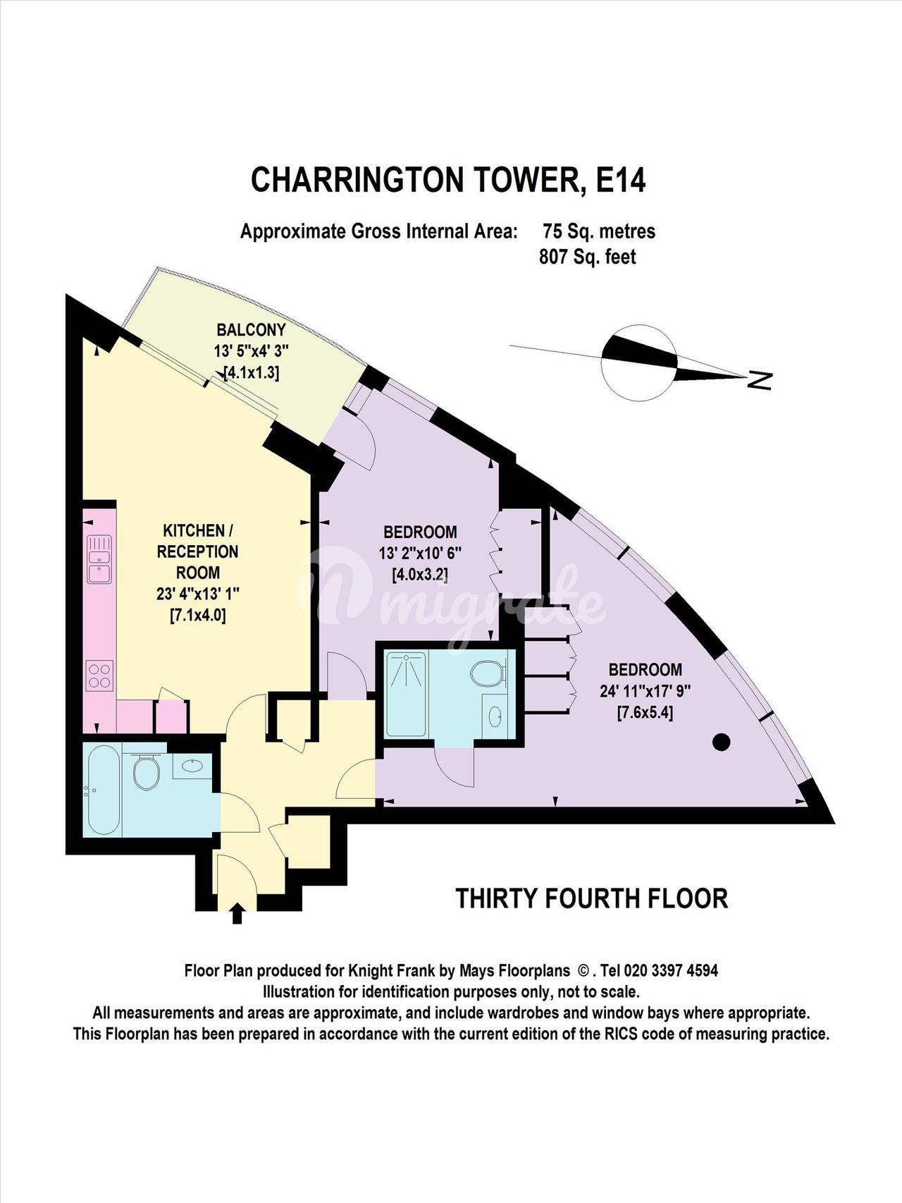 Квартира с 2 спальнями и 2 ванными комнатами, расположенная на 34-м этаже в комплексе Charrington Tower.