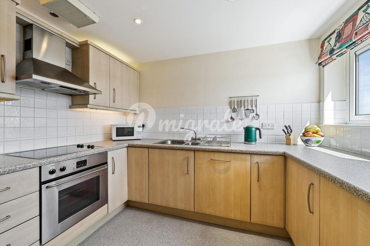 Квартира хорошо оформлена и имеет площадь около 848 кв. футов. Из гостиной вы найдете оборудованную кухню со встроенной техникой и выходом на широкий балкон, откуда открывается потрясающий вид на реку Темзу и городской пейзаж. Есть 2 спальни с двуспальными кроватями, в главной спальне есть современная ванная комната и семейная душевая, доступная из коридора. Есть также два полезных шкафа для хранения. Кроме того, квартира имеет одно охраняемое парковочное место, а комплекс охраняется консьержем.