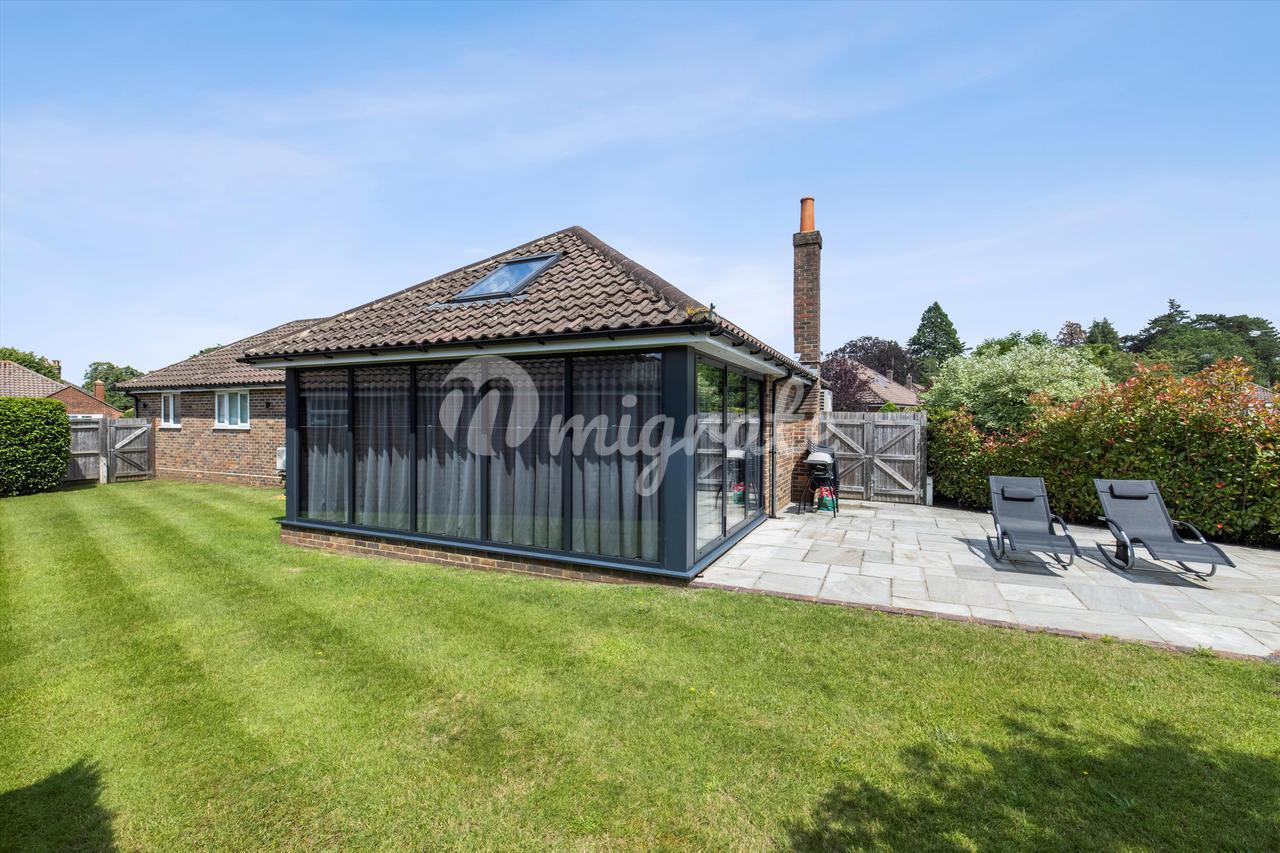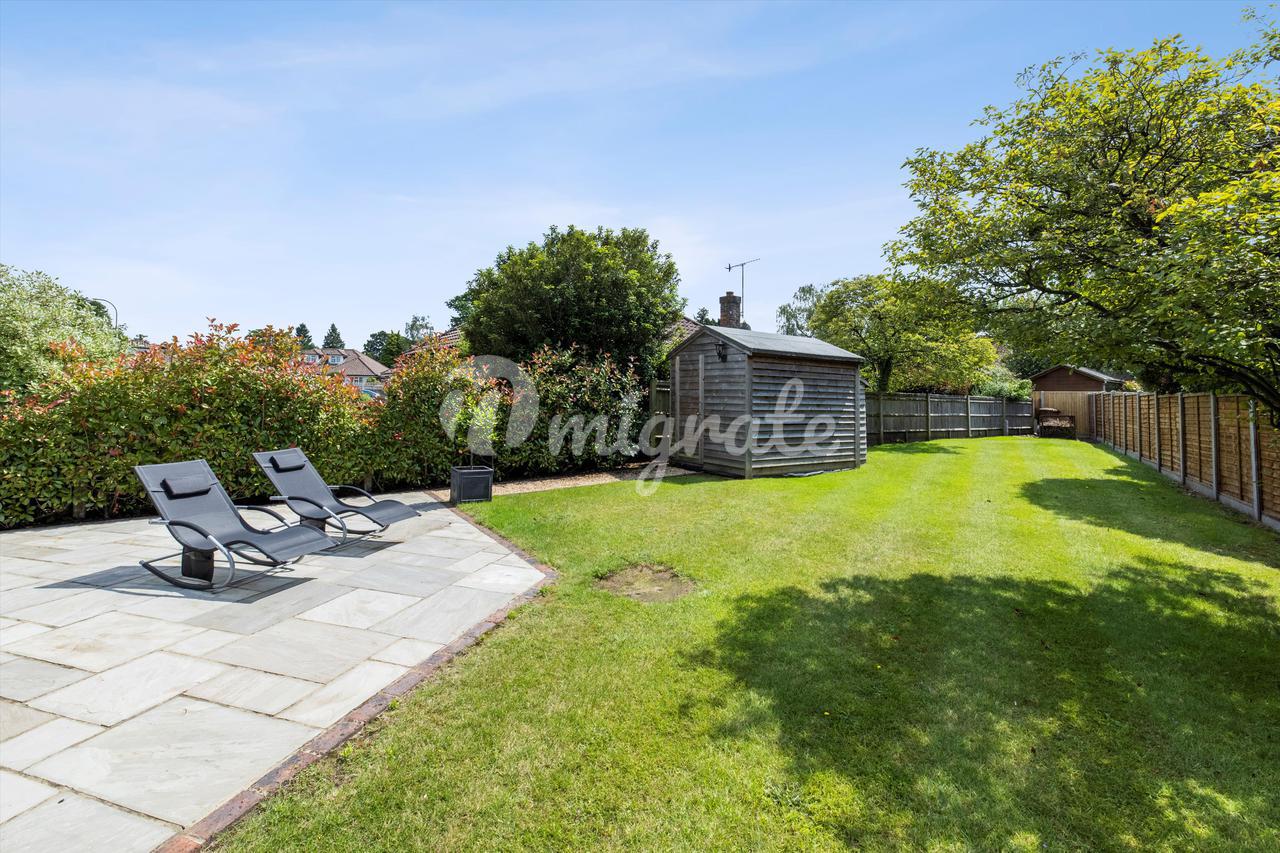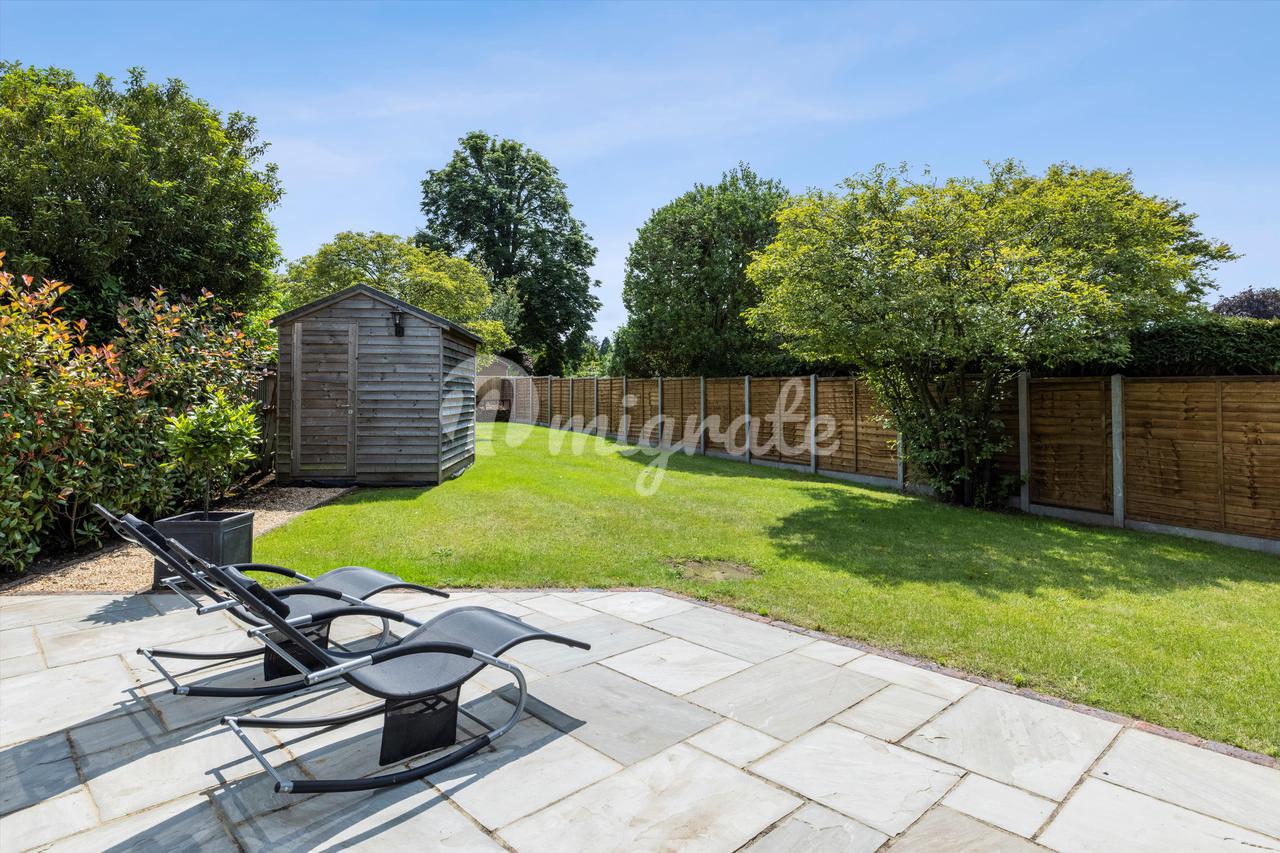 Задний сад имеет хороший размер и обеспечивает преимущественно ровную лужайку и заднюю террасу. Также имеется подъездная дорога с гравийным покрытием для парковки нескольких автомобилей.
