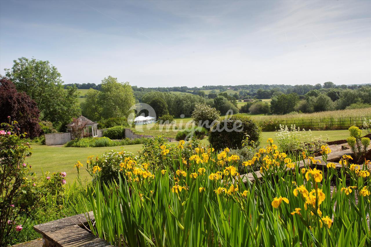 К дому подъезжают по подъездной дорожке к большому повороту и парковке перед домом. Обширные сады с газонами состоят из смеси лиственных деревьев, в том числе вишни, ивы и конского каштана. Также есть яблоневый сад. Заброшенный бассейн расположен к востоку от дома, а недавно отремонтированный теннисный корт — к западу от амбара. С территории открывается прекрасный вид на прилегающую сельскую местность.