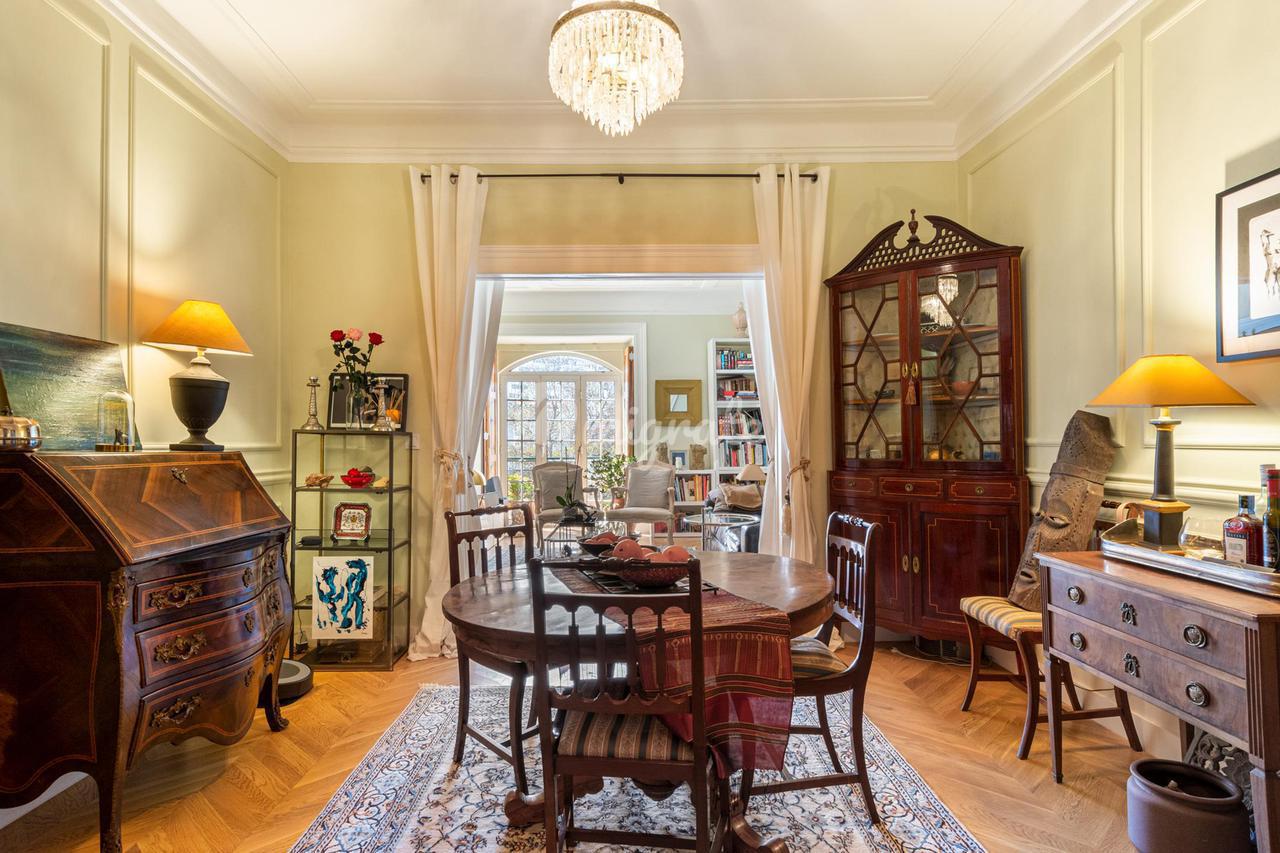 Недвижимость расположена в историческом, отреставрированном здании 20 века с лифтом и предлагает 175 кв. м жилой площади. Она состоит из гостиной и столовой, оборудованной кухни, главной спальни с собственной ванной комнатой, двух спален и общей ванной комнаты. В квартире также есть подсобное помещение, балкон в задней части дома и парковочное место в общем гараже.