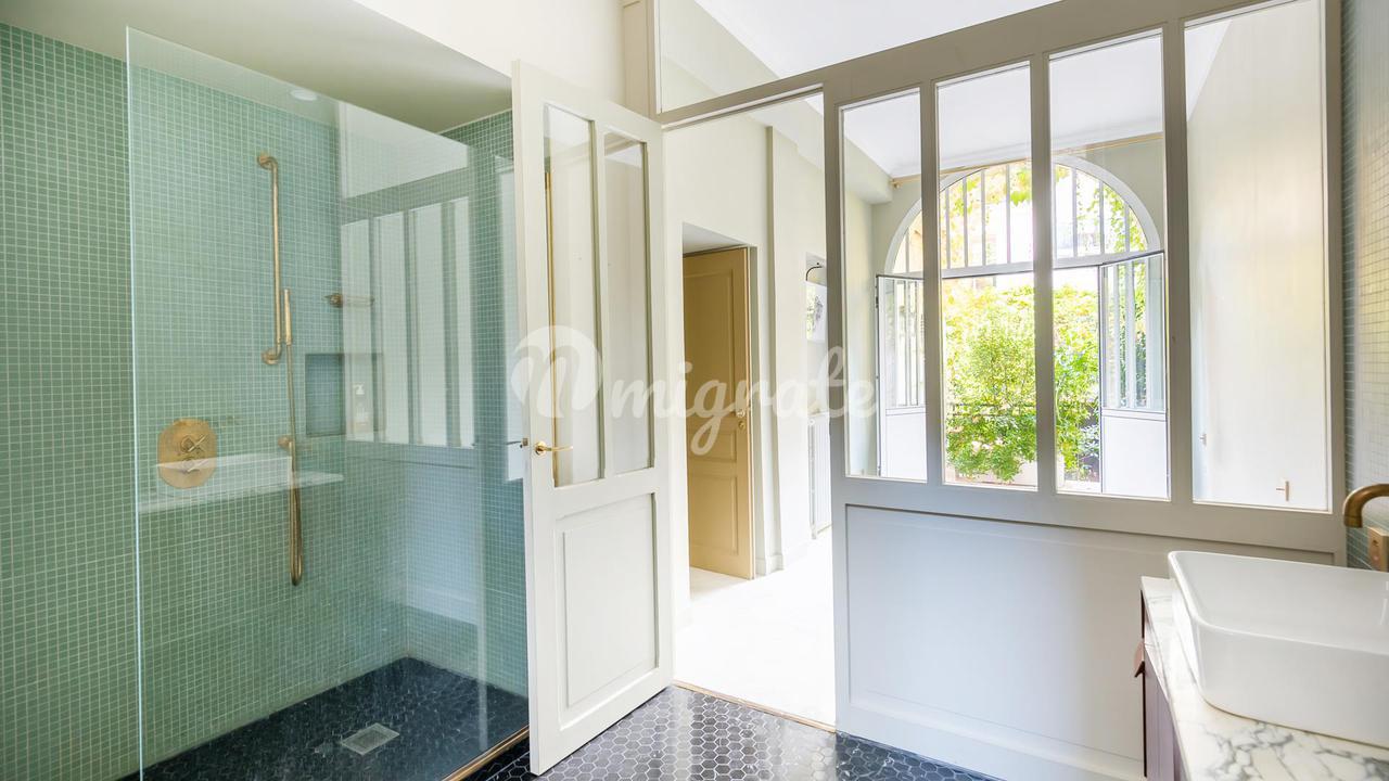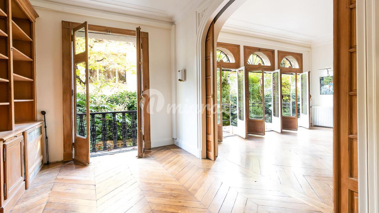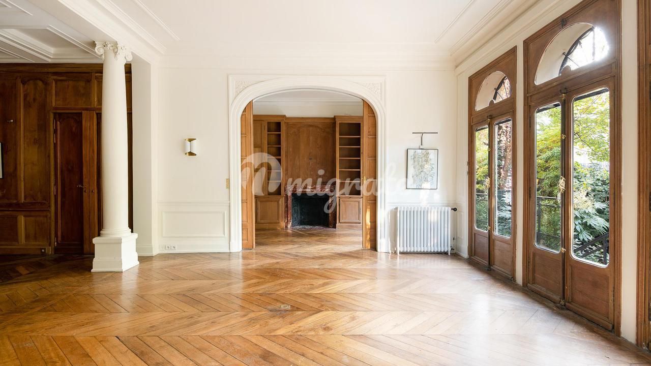 Очень элегантная квартира в тишине и зелени красивой исторической частной дороги, в самом сердце 9-го округа. Первый этаж имеет 110 кв м жилой площади, включая 2 гостиные с камином, столовую, кухню, спальню с гардеробной и ванную комнату с видом на сад. Широкая лестница ведет на цокольный этаж площадью 40 кв. м., в котором расположены кабинет, 2 спальни, освещенные большими окнами, ванная комната, гардеробная.
