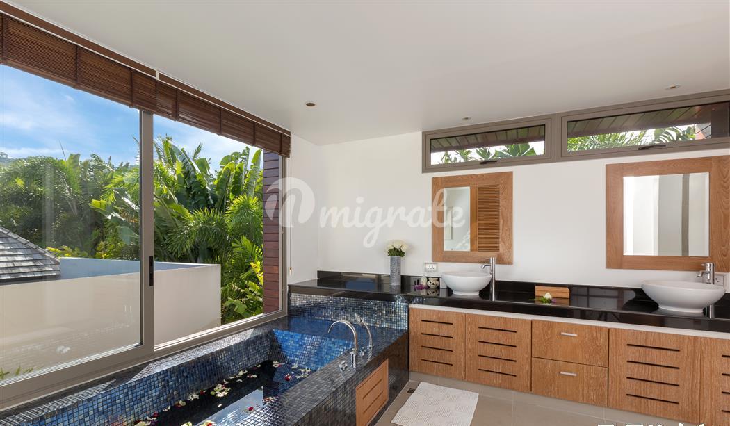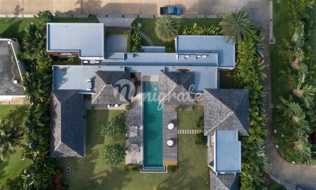 Были построены виллы с пятью и четырьмя спальнями, каждая с 16-20-метровым бассейном Infinity. Каждая вилла находится на большом земельном участке площадью от 1600 м2 до 1920 м2. Участки расположены среди просторной и пышной общей зоны, каждая вилла окружена тропическим садом. Каждая вилла имеет полы из тикового дерева; Концертина Стеклянные двери и окна; полностью оборудованные современные кухни (с несколькими вариантами дизайна и цвета), создающие свежий, чистый минималистский дизайн интерьера. Размер каждой виллы и участка обеспечивает много места для отдыха и расслабления в полном уединении. Все материалы, используемые в строительстве, высшего качества и соответствуют самым высоким западным строительным стандартам. Место тихое и непринужденное, но также в непосредственной близости от пляжа Лаян-Бангтао, Лагуны, Боут-авеню, а также соседнего пляжа Сурин.