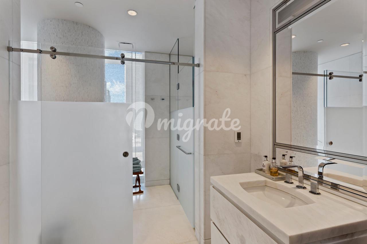 Широкие дощатые полы из белого дуба вымощают эту прекрасную резиденцию, ее величие подчеркивается почти 11-футовыми потолками, которые возвышаются над гостиной и спальней. Огромные панели окон от пола до потолка обрамляют северный вид. Светящаяся кухня сияет двухцветной никелевой мебелью, резко контрастирующей с белыми мраморными столешницами и прохладным стеклянным фартуком. В стоимость проживания входит бытовая техника Miele и Sub-Zero, а также стиральная машина с сушкой LG. Просторная ванная комната с окном обеспечивает как уединение, так и открытое пространство благодаря раздвижной стеклянной панели, разделяющей туалетную комнату и душевую.