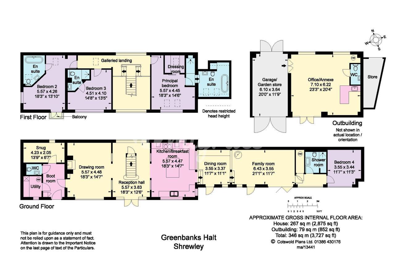 Один входит в собственность через приемную с лестницей, поднимающейся на первый этаж, и дверями, излучающими в главные комнаты приема, которые включают красивую гостиную с невероятным жильем камина, горелкой журнала и потрясающей кухней/комнатой для завтрака. Кухня/зал для завтрака имеет ряд настенных и базовых блоков под гранитной столешницей с центральным островом и встроенными приборами, включая духовку Everhot, комбинированную духовку и микроволновую печь, холодильник и посудомоечную машину. Кухня/комната для завтрака ведет в потрясающую столовую и большую семейную комнату с двустворчатыми дверями, выходящими во внутренний дворик с садом. Комната для ботинок, подсобное помещение, уютная комната и гардеробная делают первый этаж еще лучше. Полезная спальня с двуспальной кроватью и душевая также расположены на первом этаже, что хорошо подходит для размещения гостей. Первый этаж включает главную спальню с роскошной ванной комнатой и гардеробной. Есть еще две спальни с двуспальными кроватями, каждая из которых хорошо оборудована ванной комнатой с душем.