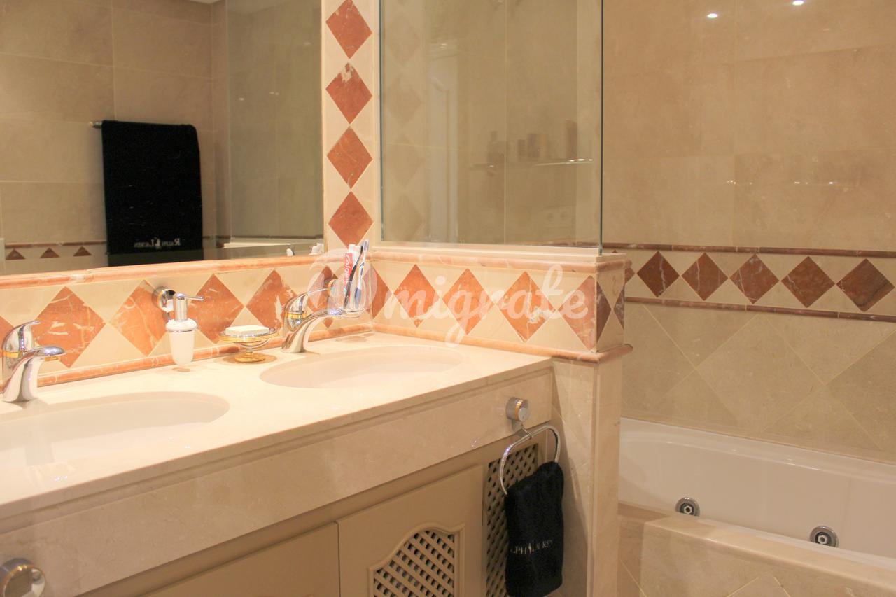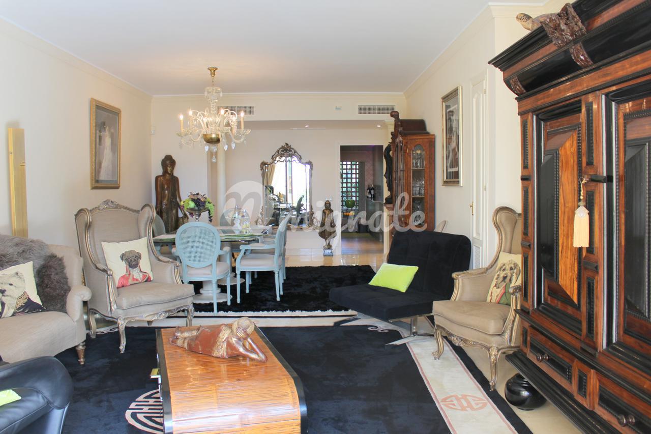 Расположенный в исключительном комплексе из 40 квартир на Новой Золотой Миле, между Лас Дунас и Кемпински, оба пятизвездочных отеля Grand Luxe, и буквально на берегу моря с пляжным баром, рядом с красивым общим бассейном, который в настоящее время обновлен до превратиться в бассейн с подогревом. В пешей доступности находится высококлассный торговый центр Laguna Village, с широким выбором эксклюзивных магазинов, уникальных ресторанов и модного пляжного клуба. Эта элегантная угловая квартира на первой линии пляжа построена по самым высоким стандартам и недавно была отремонтирована, чтобы улучшить ее качество. Теперь в нем есть недавно переделанная кухня, отремонтированная мраморная ванная комната и терраса. Недвижимость состоит из прихожей, ведущей прямо в просторную гостиную-столовую, и выхода на террасу с видом на общий сад и море. Есть две спальни и две ванные комнаты, главная спальня с ванной комнатой и джакузи и выходом на крытую террасу с видом на море. Ориентация на юг, круглосуточная охрана, охранная сигнализация с инфракрасными датчиками в каждой комнате, окна с двойным остеклением с термообработанными деревянными рамами, полы из мрамора цвета слоновой кости, красивая полностью оборудованная кухня Siematic, кондиционер (горячий и холодный) , джакузи в главной ванной комнате, лифт из гаража и кладовой в квартиру и вид на море, сад и бассейн.