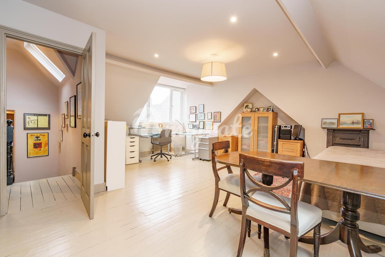 На первом этаже есть три спальни, самая большая из которых спереди используется как главная спальня. Существует также семейная ванная комната. На верхнем этаже находится большая спальня в стиле лофт с умывальником и отличным освещением и видами. Существует также душ / подсобное помещение и спальня в задней части с видом на сад.