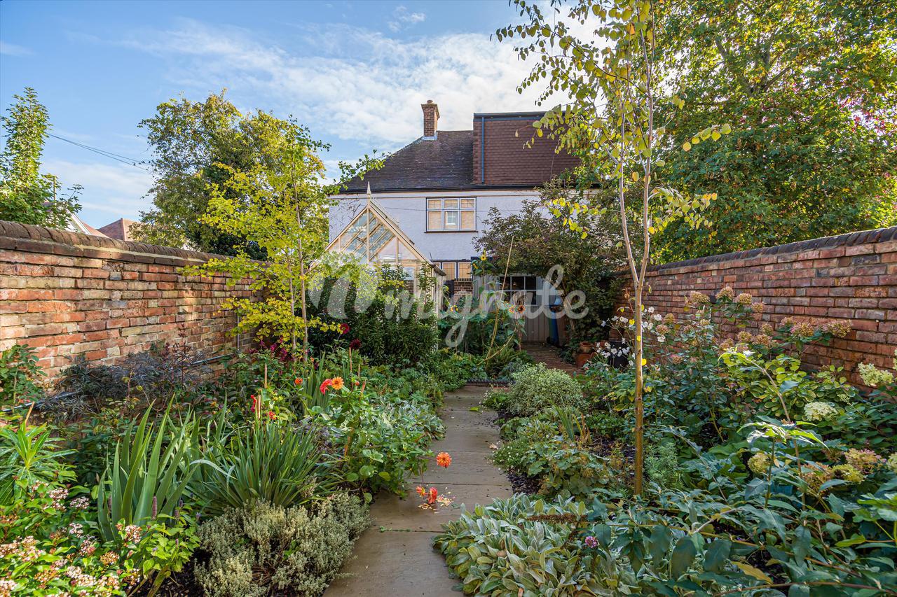 Сад был благоустроен с мощеной террасой сразу сзади со ступеньками вниз на дорожку с очень хорошо снабженными цветами и травянистыми бордюрами с обеих сторон. Здесь есть оранжерея Робинзона, очень полезный садовый сарай Национального фонда и дверь в переулок, ведущий на Портленд-роуд. Передний сад также благоустроен гравийными клумбами, цветочными бордюрами, живой изгородью из бука и крабовыми яблонями.