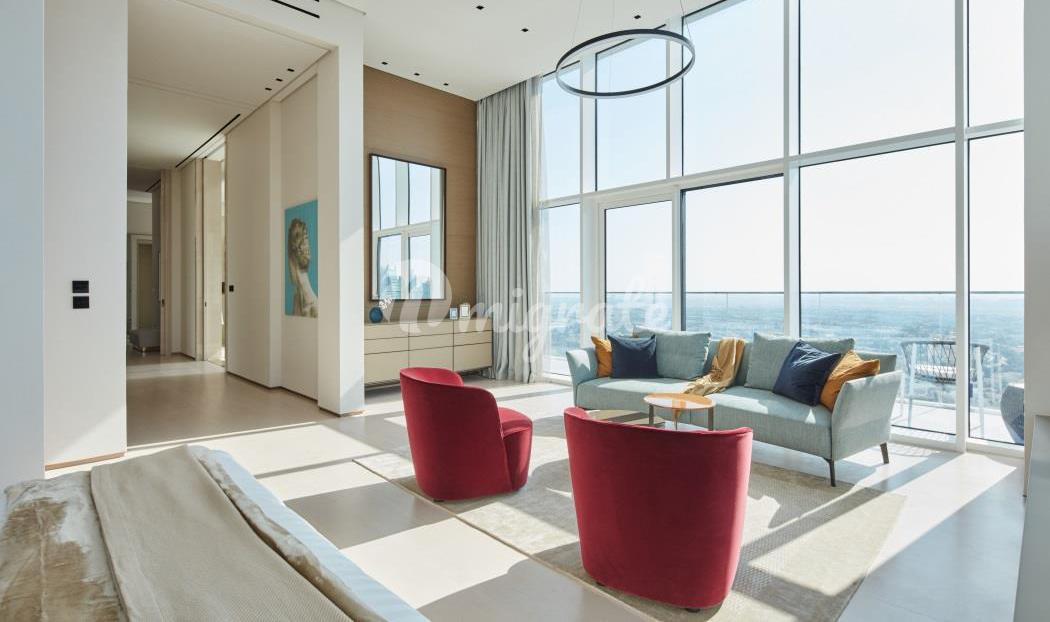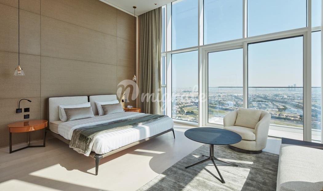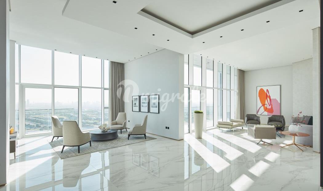 Этот пентхаус предлагает одно из самых впечатляющих жилых помещений в Дубае, с частным встроенным консольным пейзажным бассейном и обширной открытой террасой для развлечений. 4,5-метровые окна от пола до потолка, занимающие целый этаж, обеспечивают захватывающий 360-градусный обзор двух полей для гольфа и горизонта Дубая. Совершенно новый смысл понятия роскоши. Когда дело доходит до мельчайших деталей, мы не оставили камня на камне, чтобы создать этот дом с уникальным дизайном. Созданный для людей с утонченным вкусом, каждый номер отражает высочайший уровень качества и внимание к деталям. От умной планировки до лучших кухонь и великолепной отделки — здесь архитектура спроектирована изнутри.