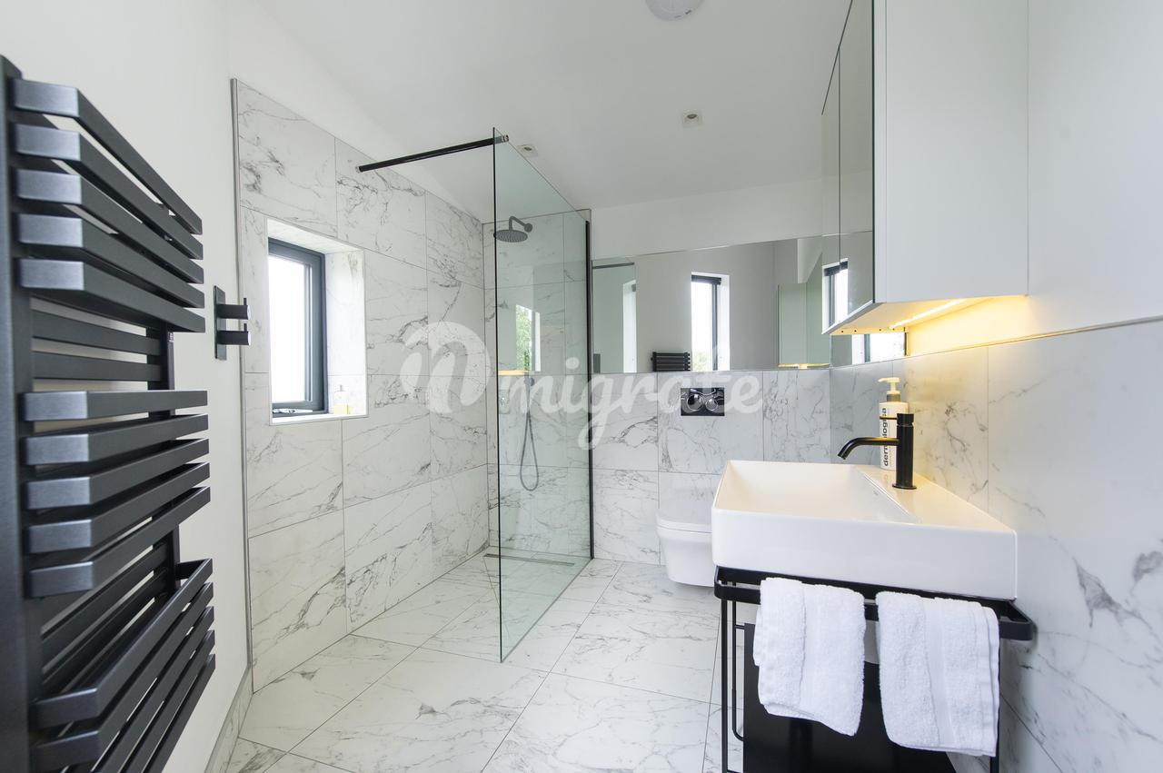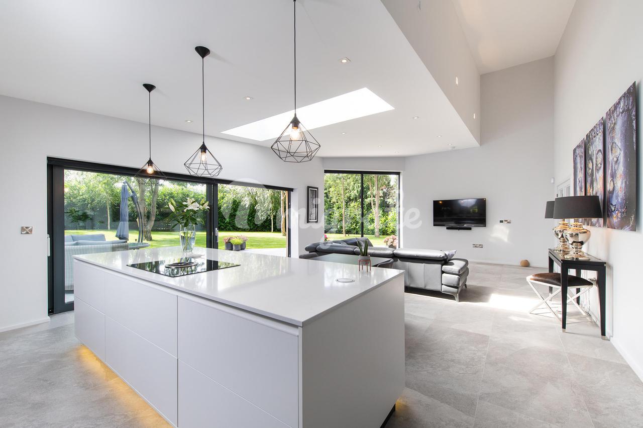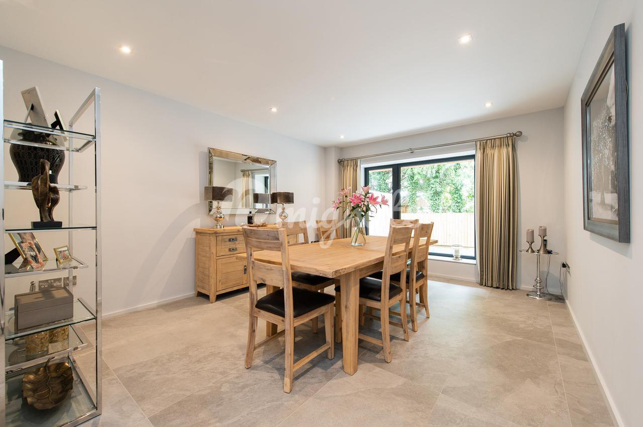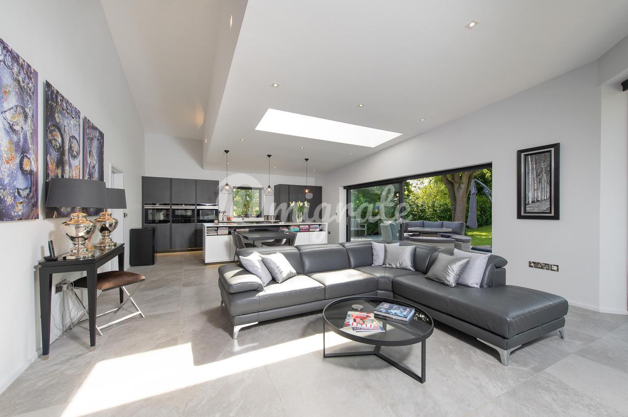 Вход в здание осуществляется через вестибюль с дверями в приемные и лестницей, ведущей на второй этаж. Приемные включают в себя двухстороннюю гостиную с раздвижными дверями в заднюю часть и большую столовую. В задней части дома есть великолепная кухня/комната для завтрака/семейная. Эта светлая и просторная комната имеет раздвижные двери в задний сад, что позволяет максимально использовать зрелую обстановку. Кухонная зона имеет ряд настенных и базовых блоков под мраморной столешницей и центральный остров с рядом встроенных приборов Siemens, включая три духовки со встроенной микроволновой печью, индукционную плиту, ящик для подогрева, посудомоечную машину, холодильник и морозильную камеру. Здесь достаточно места для обеденного стола и зоны отдыха с раздвижными дверями, ведущими в большой внутренний дворик, благодаря чему это пространство идеально подходит для семейного проживания открытой планировки. Жилье на первом этаже дополнено полезным кабинетом, идеально подходящим для домашних работников и подсобных помещений. Первый этаж включает в себя роскошную главную спальню с душевой и гардеробной, гостевую спальню со встроенным шкафом и душевой, еще две спальни со встроенными шкафами и семейную ванную комнату.
