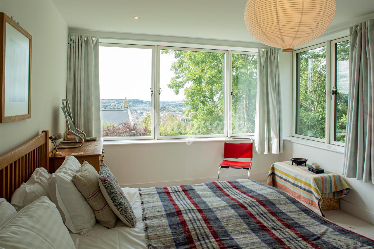 На первом этаже все спальни имеют большие окна с панорамным видом на город и холмы за его пределами. Есть главная спальня плюс три спальни с двуспальными кроватями, все одинакового размера, и две ванные комнаты вдоль длинного коридора с потолочным окном, которое простирается по всей длине потолка, позволяя свету проникать внутрь.